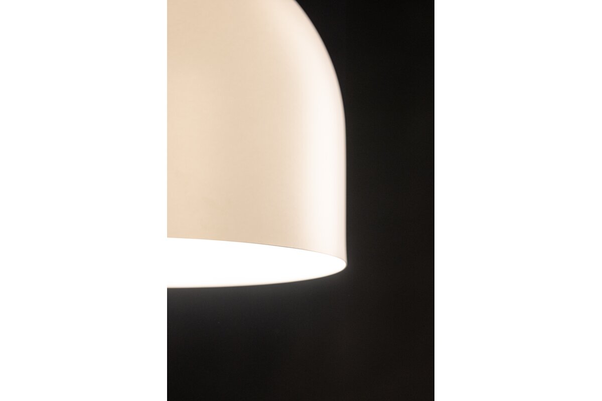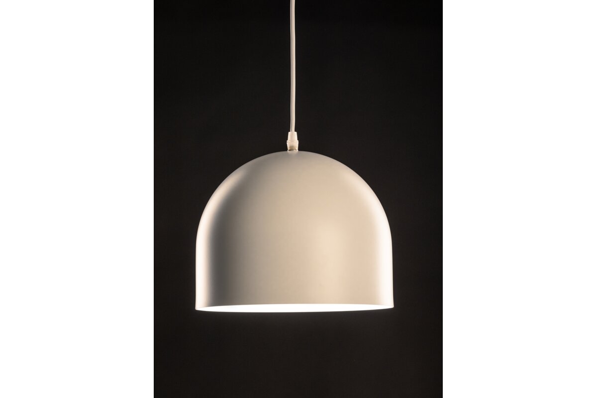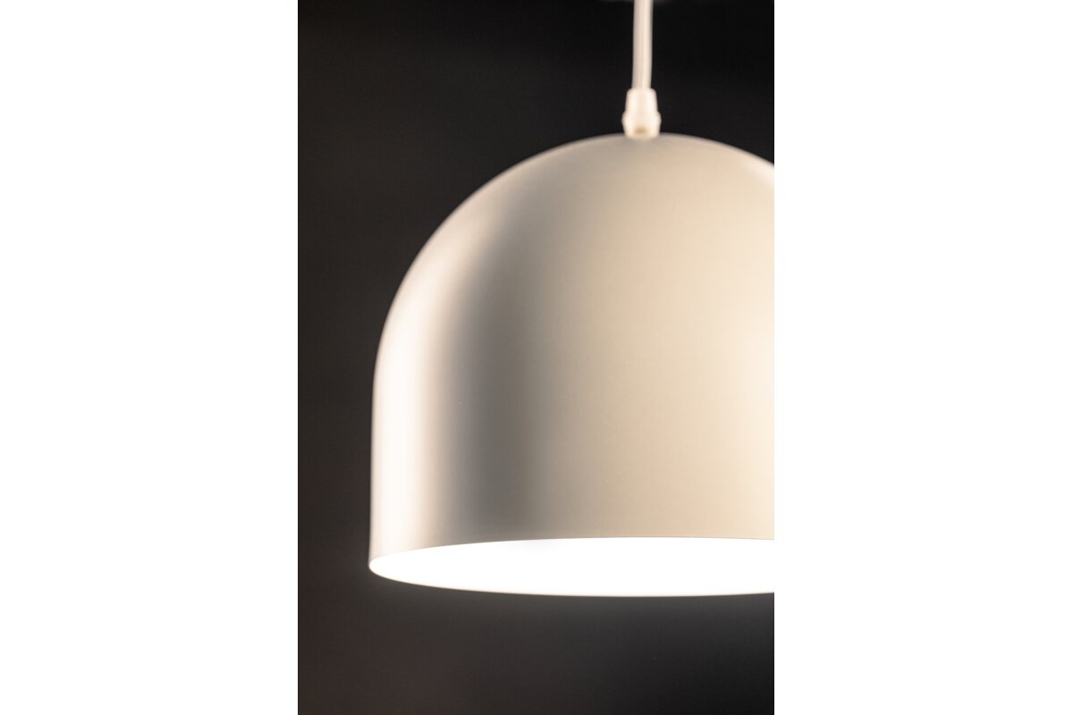 Lampa została wykonana z wysokiej jakości materiałów. Głęboki metalowy klosz w kolorze białego matu, przy zastosowaniu źródła światła o ciepłej barwie, tworzy przyjazną, rodzinną atmosferę.