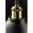 Mosiężne mocowanie połączone z metalowym kloszem nadają lampie ponadczasowego wyglądu. Klosz od zewnątrz ma czarne, matowe wykończenie, które wprowadza do pomieszczenia wyrafinowaną elegancję. Natomiast pozłacane wnętrze oprawy dodatkowo ociepla wydobywające się z lampy światło.