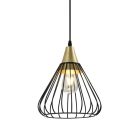 Czarny metalowy klosz w kształcie zaokrąglonego stożka dobrze współgra ze złotym mocowaniem. Połącznie czarnego koloru ze złotem sprawia, że lampa jest nietuzinkowa, przyciąga wzrok i nadaje wnętrzu wyjątkowego charakteru. Będzie więc świetną dekoracją do salonu lub do otwartej kuchni, np. nad dużym drewnianym stołem. Na tle ceglanej ściany wypadnie perfekcyjnie i stylowo.