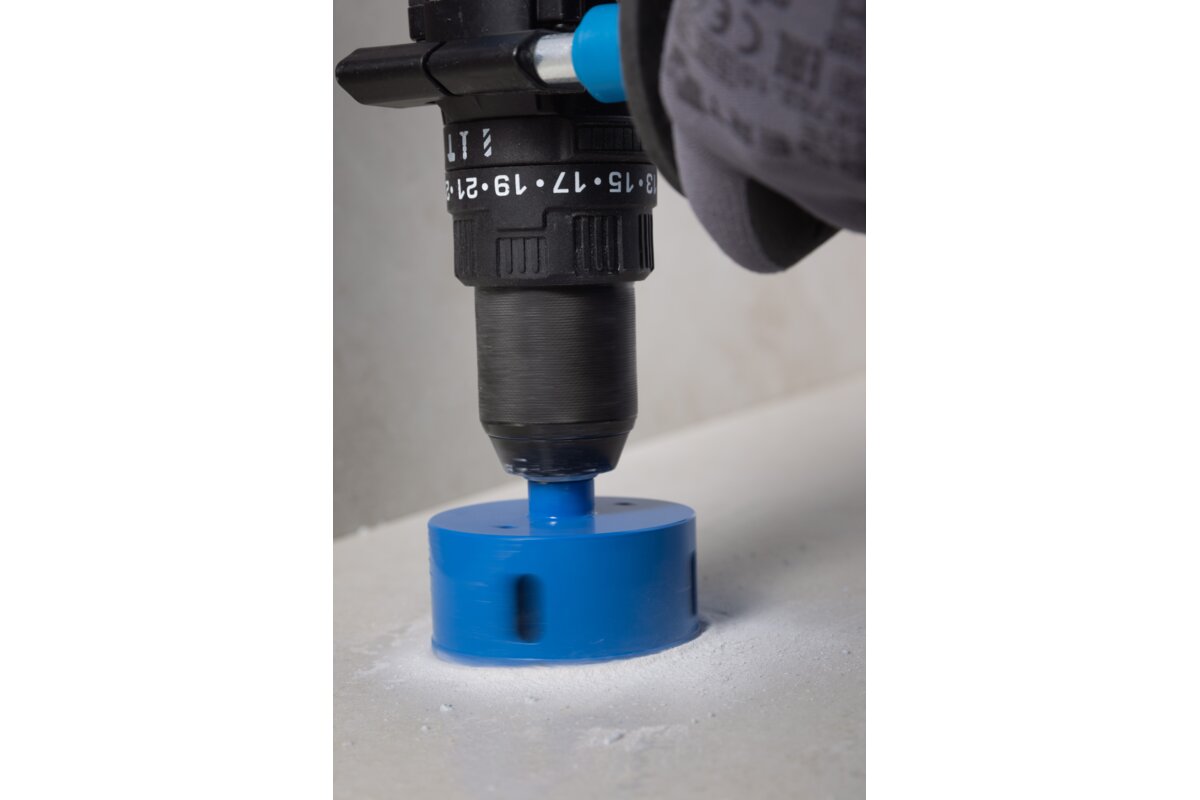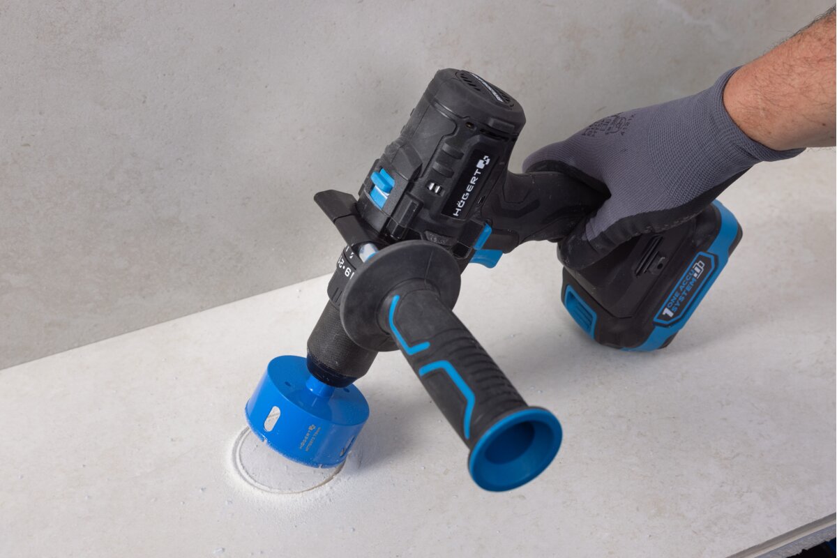 - profilowany uchwyt walcowy pozwala wykonywać precyzyjnie większe otwory z zastosowaniem wiertarek i wiertarko-wkrętarek.
