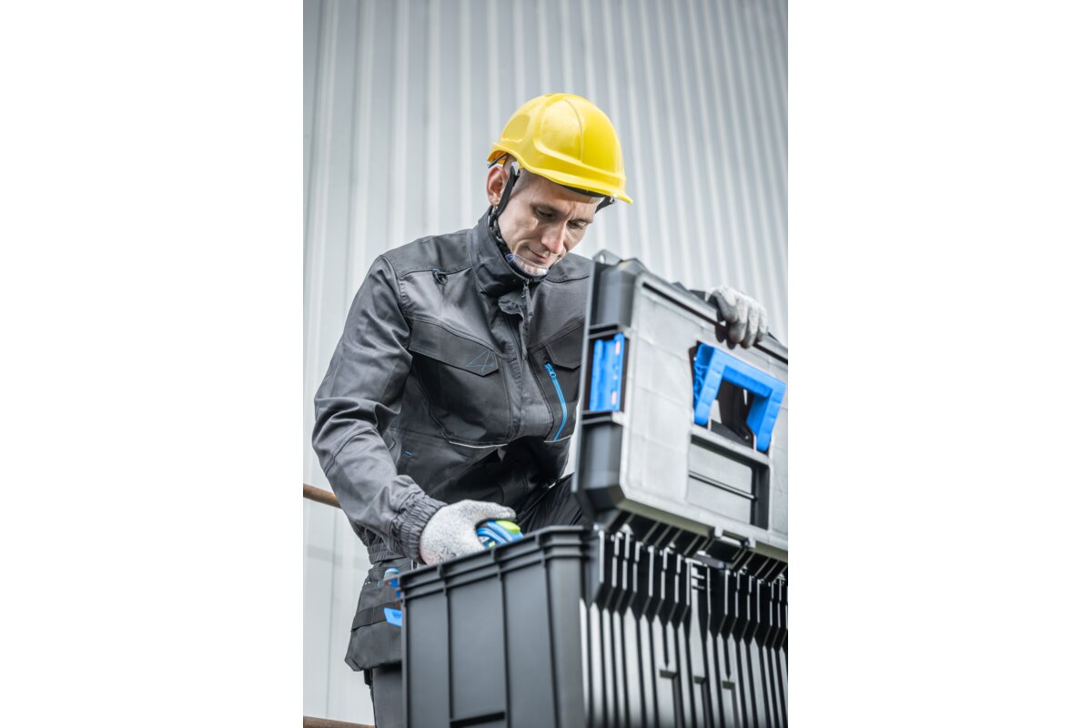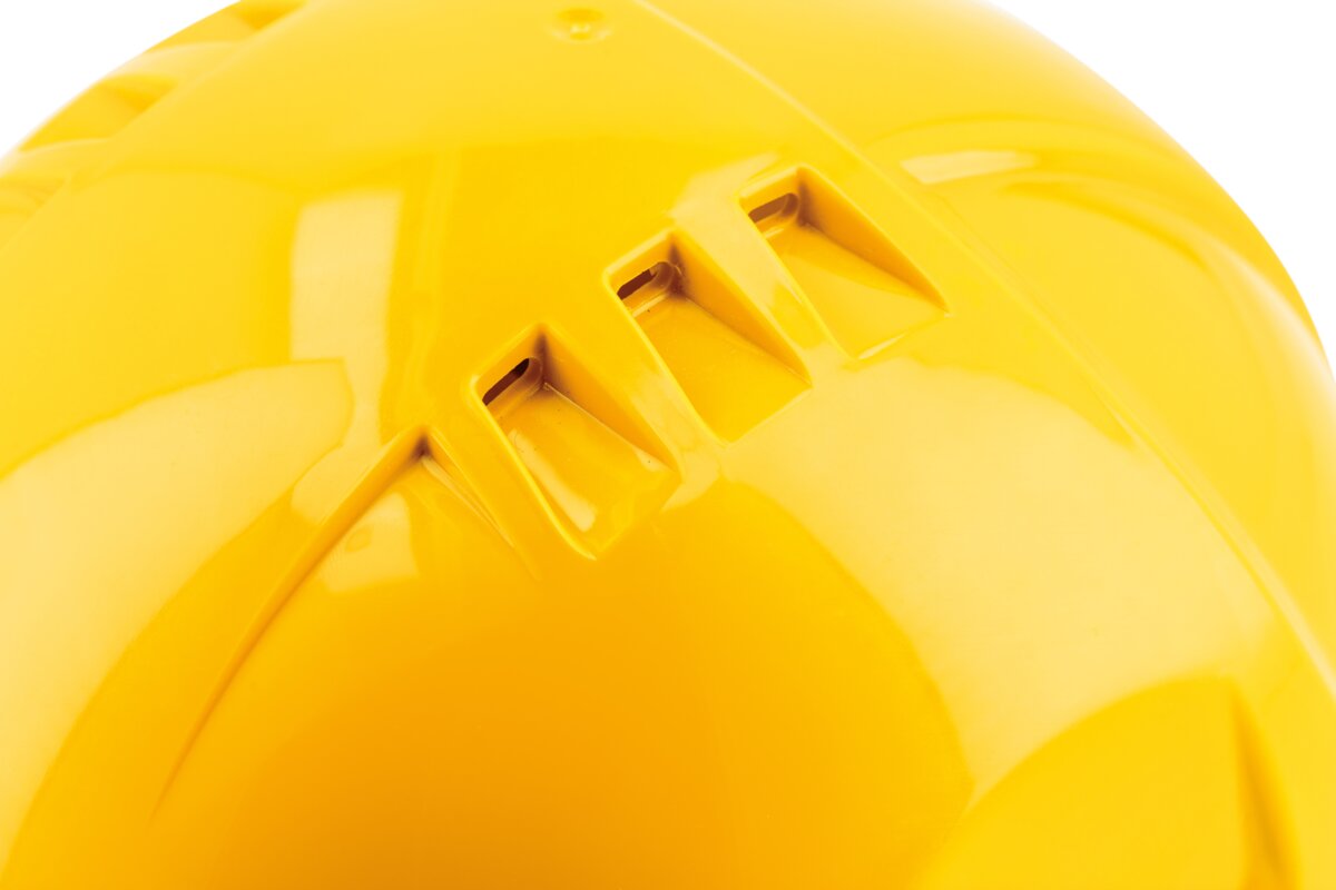 Hełm ochronny wykonany z wytrzymałego tworzywa ABS przeznaczony jest do zastosowań profesjonalnych w przemyśle, budownictwie i logistyce. Konstrukcja skorupy zapewnia odporność mechaniczną w niskich temperaturach oraz skuteczną ochronę przed czynnikami atmosferycznymi i promieniowaniem UV. System regulacji oparty na pokrętle oraz 6-punktowa więźba z taśm poliestrowych gwarantują optymalne dopasowanie i komfort użytkowania. Boczne uchwyty umożliwiają integrację z dodatkowymi środkami ochrony twarzy, oczu i słuchu, co czyni ten model wszechstronnym rozwiązaniem dla środowisk pracy o podwyższonym ryzyku.