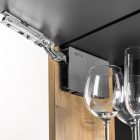 Podnośnik mechaniczny, który ułatwia zaprojektowanie funkcjonalnych oraz nowoczesnych szafek górnych. Dostępny w dwóch wersjach, soft close oraz push to open. Zapewnia płynność ruchu oraz amortyzację przy zamykaniu szafek. Umożliwia zatrzymanie klapy w dowolnym położeniu zadanym przez użytkownika. Posiada aż 3 rodzaje regulacji: siły działania, czasu domknięcia oraz kąta otwarcia w przedziale 90° do 105°. Podnośnik znajdzie swoje zastosowanie w klapach o wysokości od 300 mm do 650 mm. Możliwość wyboru aż czterech wariantów siły sprężyny dostosowanych do wysokości i ciężaru frontu, umożliwia szeroki zakres zastosowania. Dostępne są 3 warianty kolorystyczne zaślepek: biały, antracyt oraz czarny. Prosty montaż, bez użycia dodatkowych szablonów czy pomiarów gdzie konstrukcja podnośnika jest jednocześnie jego szablonem montażowym.