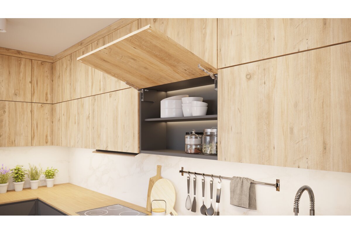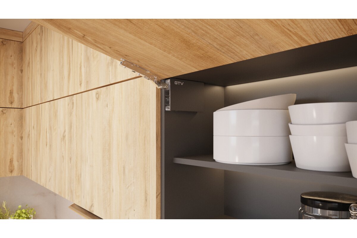 Podnośnik mechaniczny, który ułatwia zaprojektowanie funkcjonalnych oraz nowoczesnych szafek górnych. Dostępny w dwóch wersjach, soft close oraz push to open. Zapewnia płynność ruchu oraz amortyzację przy zamykaniu szafek. Umożliwia zatrzymanie klapy w dowolnym położeniu zadanym przez użytkownika. Posiada aż 3 rodzaje regulacji: siły działania, czasu domknięcia oraz kąta otwarcia w przedziale  90° do 105°. Podnośnik znajdzie swoje zastosowanie w klapach o wysokości od 300 mm do 650 mm. Możliwość wyboru aż czterech wariantów siły sprężyny dostosowanych do wysokości i ciężaru frontu, umożliwia szeroki zakres zastosowania. Dostępne są 3 warianty kolorystyczne zaślepek: biały, antracyt oraz czarny. Prosty montaż, bez użycia dodatkowych szablonów czy pomiarów gdzie konstrukcja podnośnika jest jednocześnie jego szablonem montażowym.