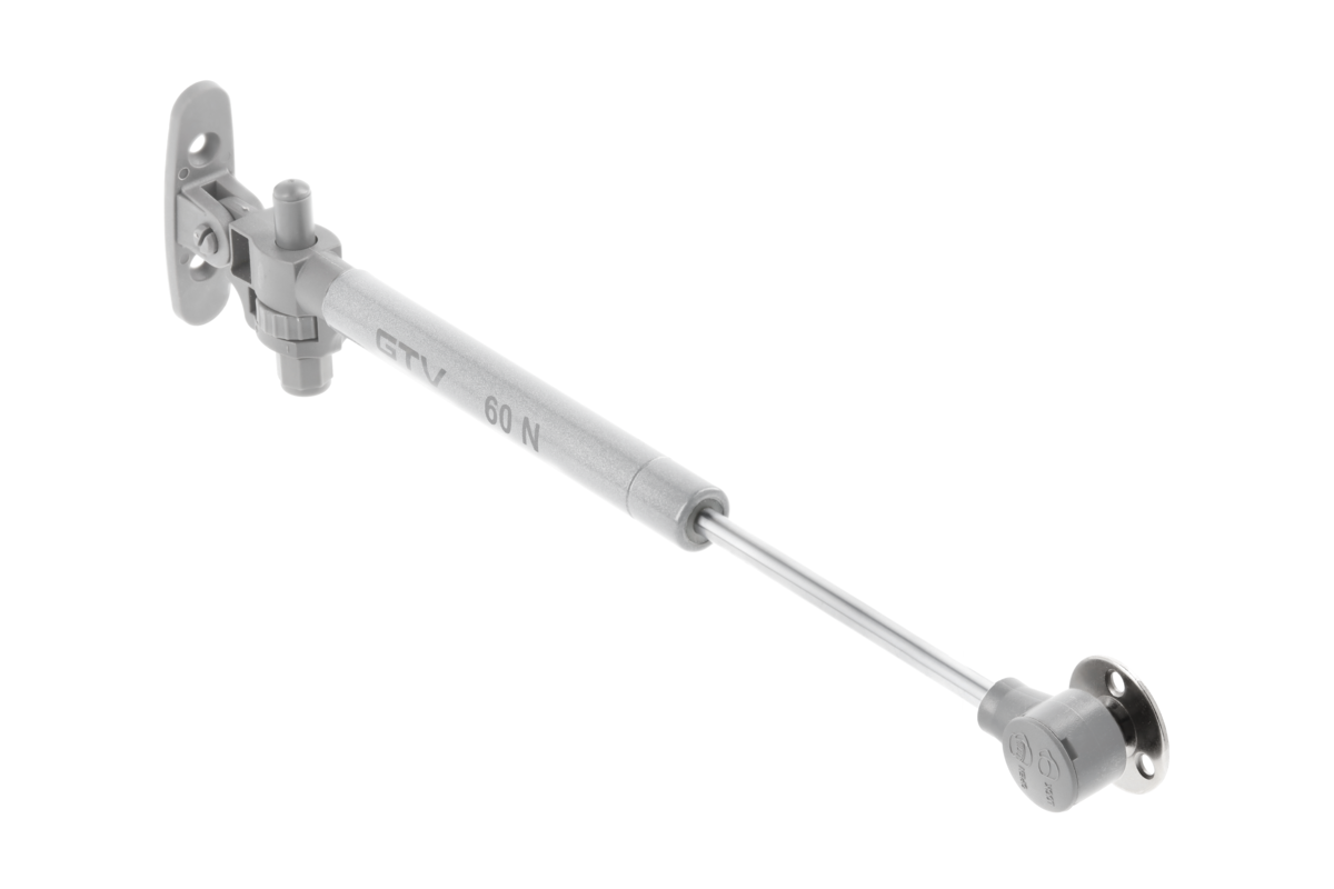 Podnośnik gazowy z amortyzatorem i regulacją umożliwia zaprojektowanie funkcjonalnych oraz nowoczesnych szafek górnych. Podnośnik zapewnia płynność oraz amortyzacje przy otwieraniu szafek. Jego mechanizm zapobiega bezwładnemu opadnięciu frontu, a wykorzystana technologii cichego domyku dodatkowo usprawnia użytkowanie. Wykonany ze stali, znajdzie swoje zastosowanie w klapach barkowych o wysokości frontu do 600 mm. Dostępne 3 warianty kolorystyczne: szary, biały, antracyt. Orientacyjny kąt otwarcia wynosi 75-90° w zależności od użytego zawiasu. Dostępne 6 wariantów siły produktu: 50, 60, 80, 100, 120, 150 N. Podczas montażu wymaga zastosowania zawiasów.