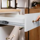 Prowadnice Versalite Plus+ to sprawdzona trwałość – certyfikat SGS na 80 000 cykli. Pełny wysuw umożliwia dostęp do całej głębokości szuflady a mechanizm soft close doskonale wpływa na komfort i ergonomię o każdej porze dnia.