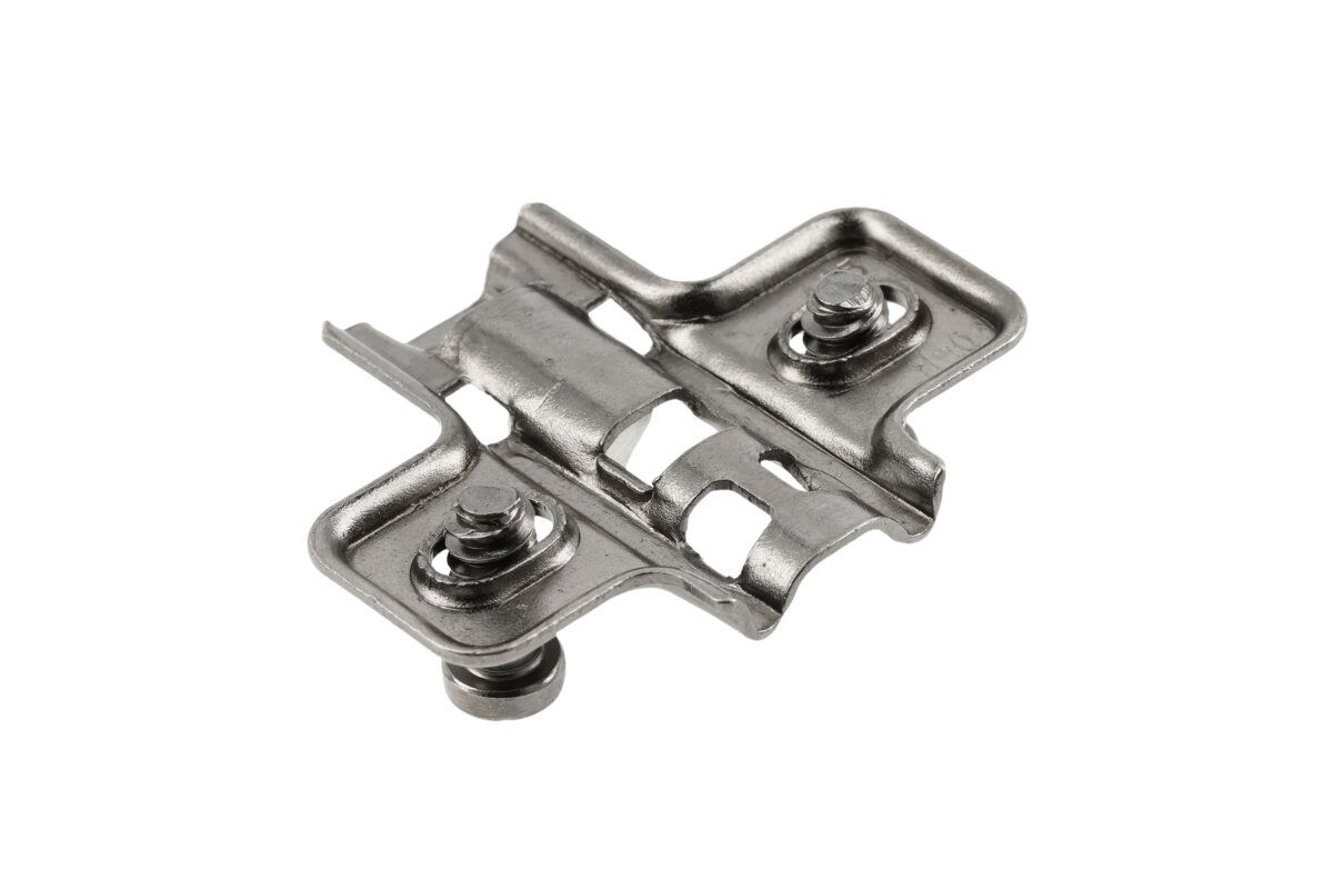 Prowadnik do zawiasu Silento Pro. W zestawie znajdują się wkręty euro, przez co montaż jest pewny i prosty. Technologia CLIP-ON ułatwia osadzenie zawiasu.