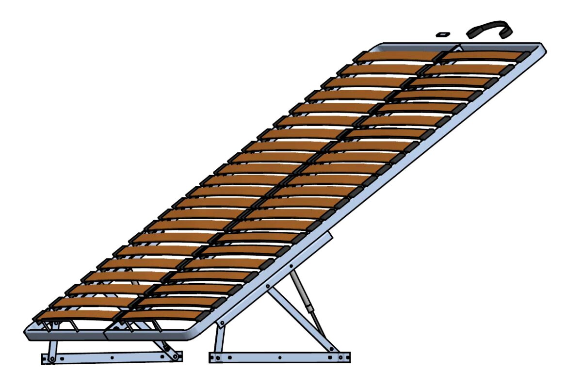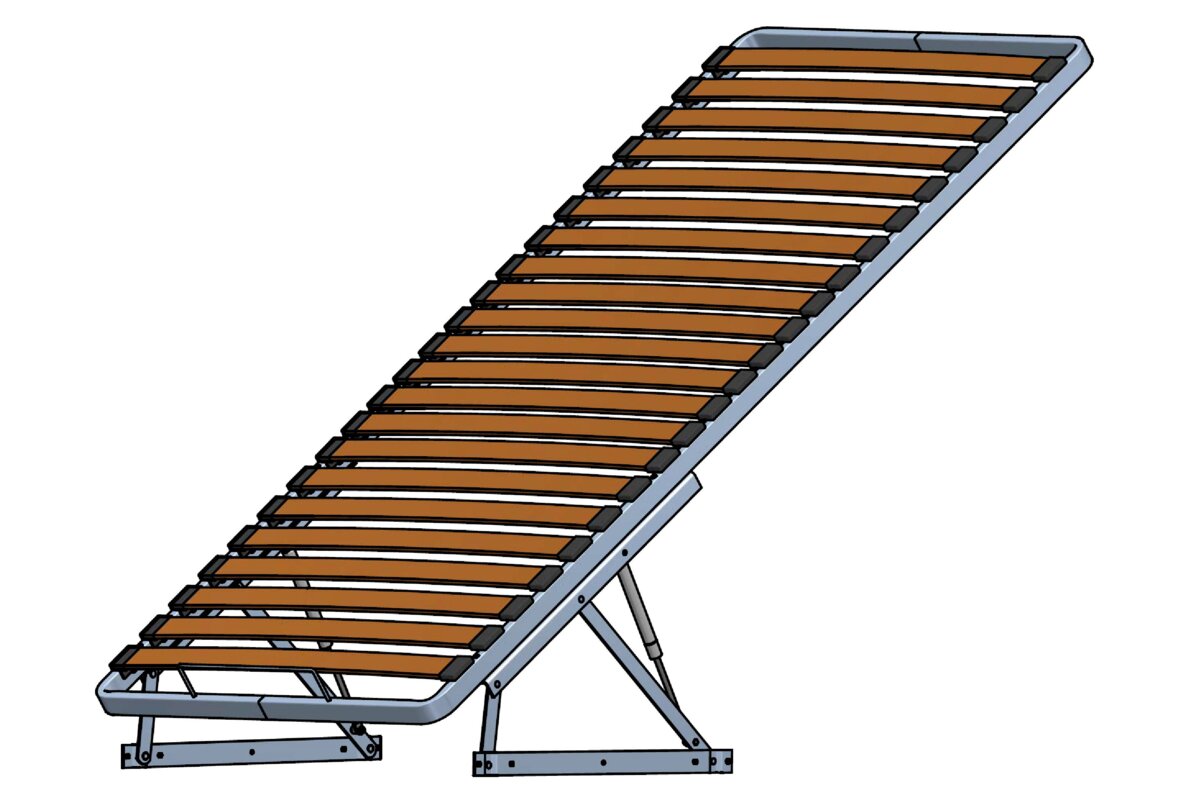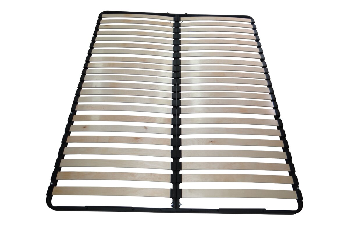 Rama do łóżka sypialnianego pod materac to konstrukcja nośna wykonana z metalu, wyposażona w drewniane listwy sprężynujące, które zapewniają wysoki komfort użytkowania. Wytworzona z wysokiej jakości trwałego i niezawodnego materiału. Konstrukcja została wyprodukowana na bazie profilu 40x20mm, co sprawia, że jest wyjątkowo wytrzymała i stabilna. W tylnej części ramy umieszczony jest długi pręt, który zapobiega opadaniu materaca podczas podnoszenia ramy.