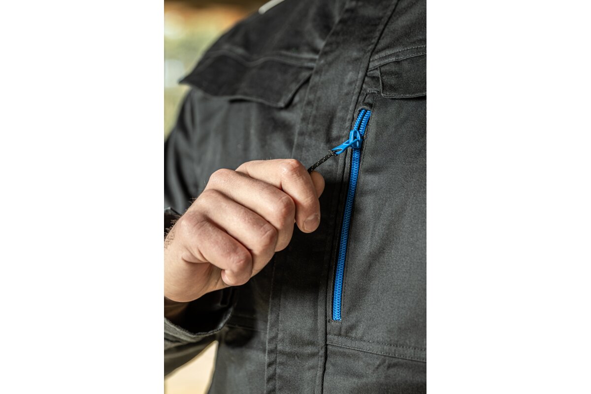 Elastyczna bluza ochronna REETZ  łączy innowacyjny design z funkcjonalnością. Wyraźne, fluorescencyjne akcenty kolorystyczne dodają dynamicznego charakteru, jednocześnie zwiększając widoczność użytkownika. Tkanina TWILL o wysokiej gramaturze zapewnia trwałość i wygodę, jednocześnie pozostając elastycznym. Skład materiału obejmujący bawełnę, poliester i elastan, gwarantuje optymalne dopasowanie i komfort noszenia. Wzmocnienia z materiału OXFORD 600D zapewniają dodatkową wytrzymałość w kluczowych obszarach.