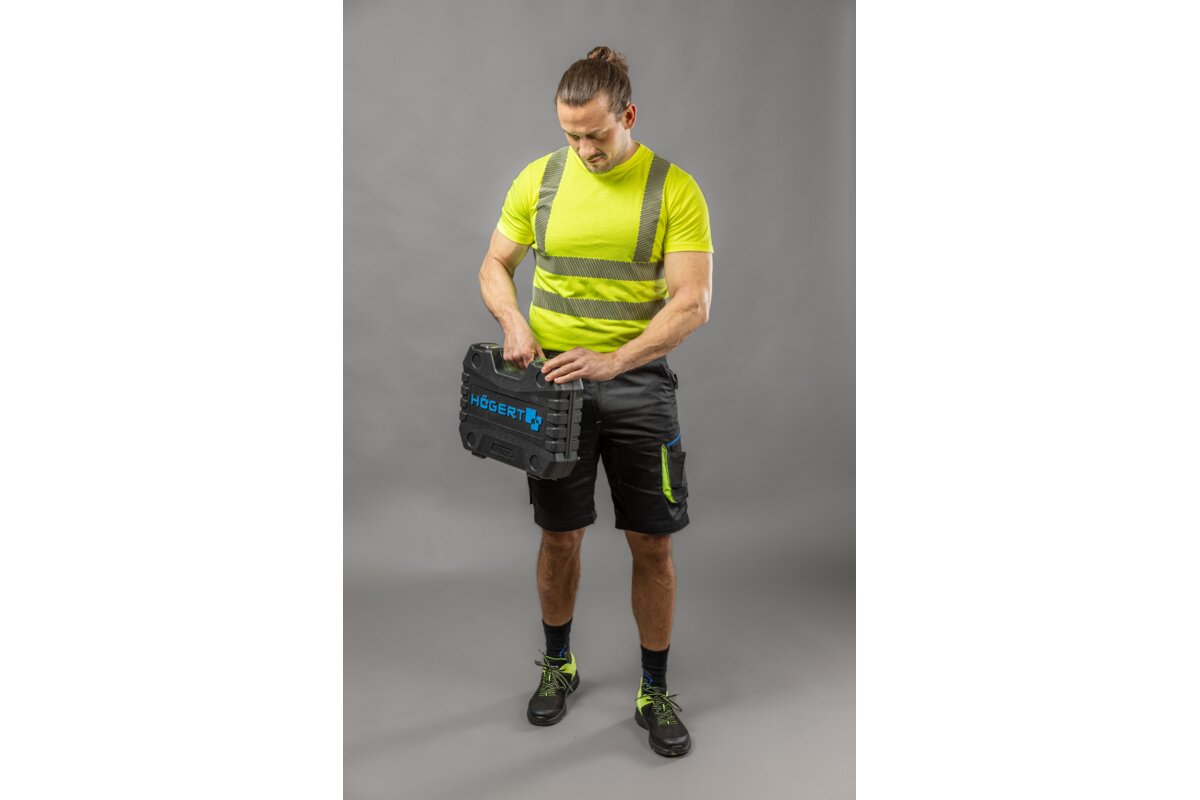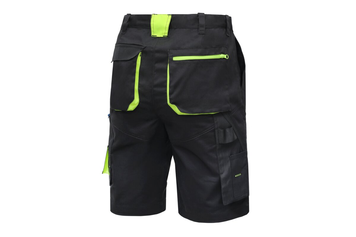 Elastyczne spodenki ochronne REETZ łączą innowacyjny design z funkcjonalnością. Wyraźne, fluorescencyjne akcenty kolorystyczne dodają dynamicznego charakteru, jednocześnie zwiększając widoczność użytkownika. Tkanina TWILL o wysokiej gramaturze zapewnia trwałość i wygodę, jednocześnie pozostając elastycznym. Skład materiału obejmujący bawełnę, poliester i elastan, gwarantuje optymalne dopasowanie i komfort noszenia. Wzmocnienia z materiału OXFORD 600D zapewniają dodatkową wytrzymałość w kluczowych obszarach.