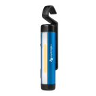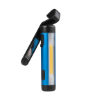 Kompaktowy reflektor LED z dwoma różnymi źródłami światła i obrotowym uchwytem.