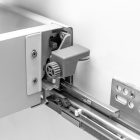 Rolka stabilizująca do szuflad Modern Box. Przeznaczony jest do stabilizacji szuflady z funkcją Push to open. Mocowania znajdują się w płaszczach bocznych, nie wymagają dodatkowych nawiertów.