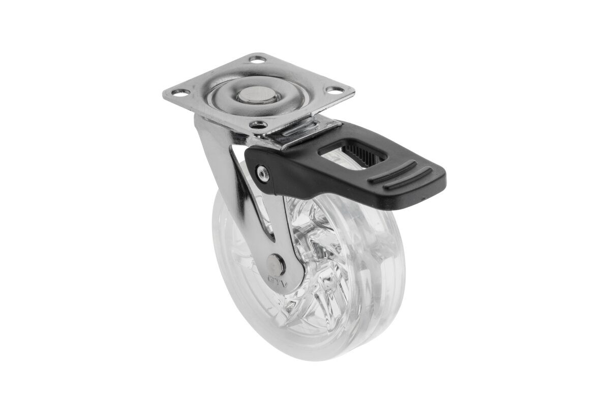 Rolka meblowa GTV SHIFT 75, H=91mm, fi75 mm, z hamulcem, PC/PU, przezroczysty