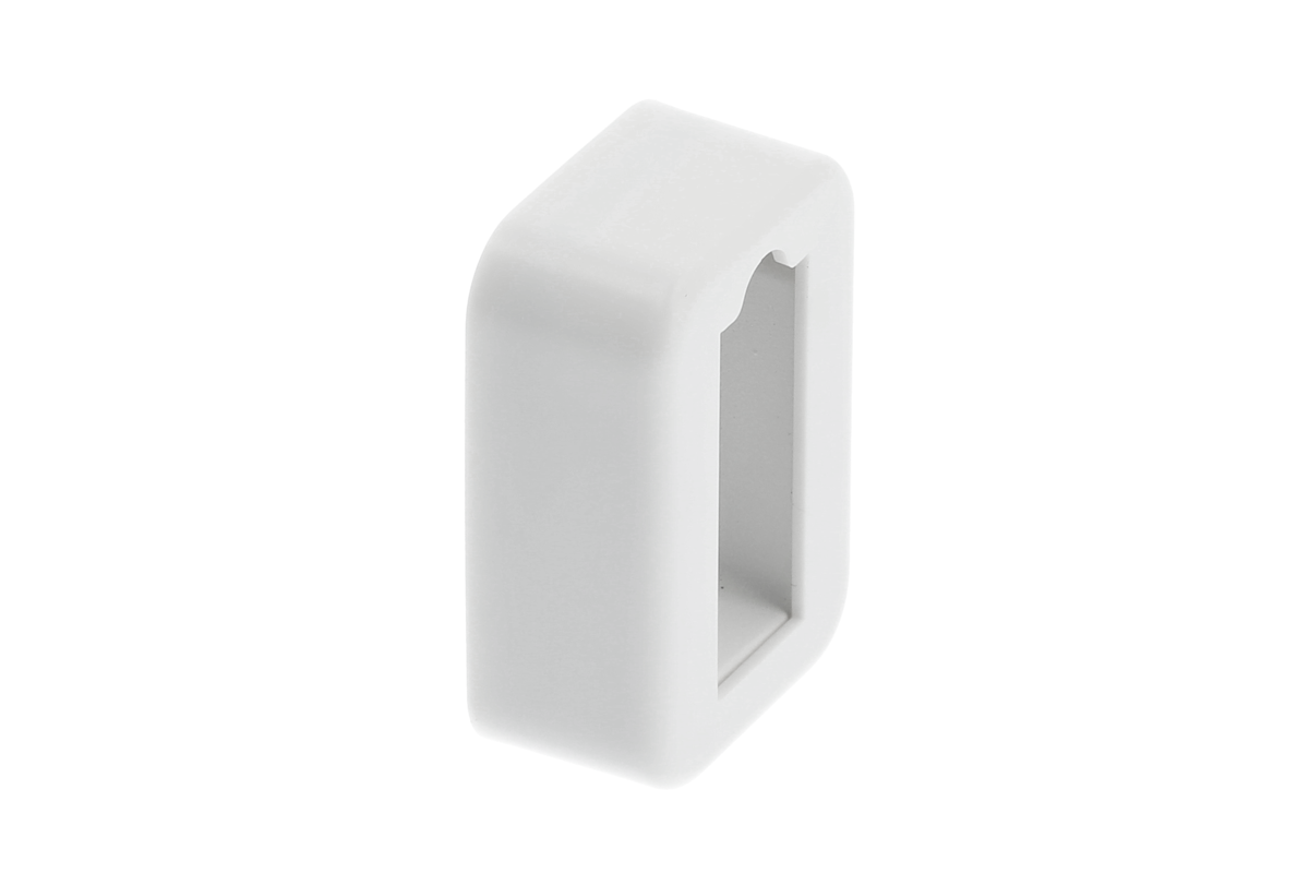 Rozetka prostokątna z zaślepką wykonana ze stopu ZnAl dostępna w dwóch wariantach kolorystycznych – biały i antracyt. Zastosowanie do montażu drążka meblowego.