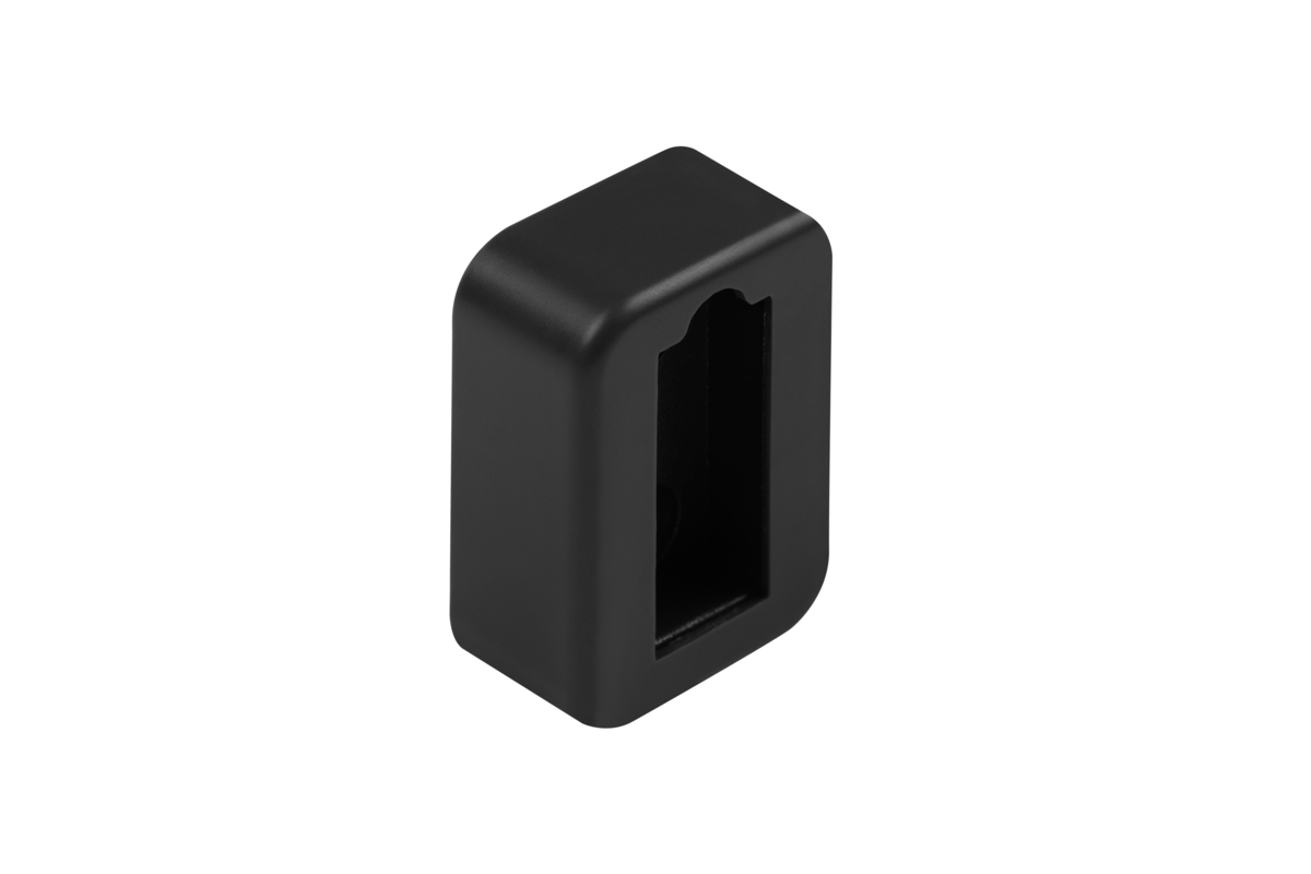 Rozetka prostokątna z zaślepką wykonana ze stopu ZnAl dostępna w trzech wariantach kolorystycznych. Zastosowanie do montażu drążka meblowego.