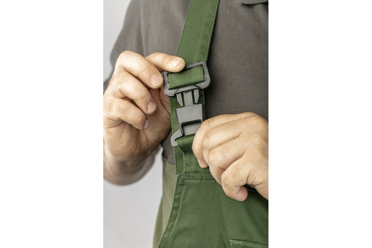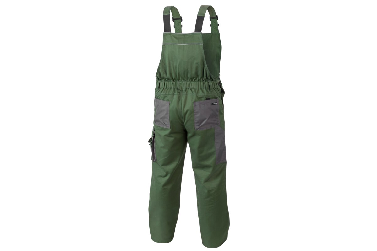 Spodnie ochronne typu ogrodniczki. Staranne wykonanie oraz wysokiej jakości materiały zapewniają wysoki komfort użytkowania.