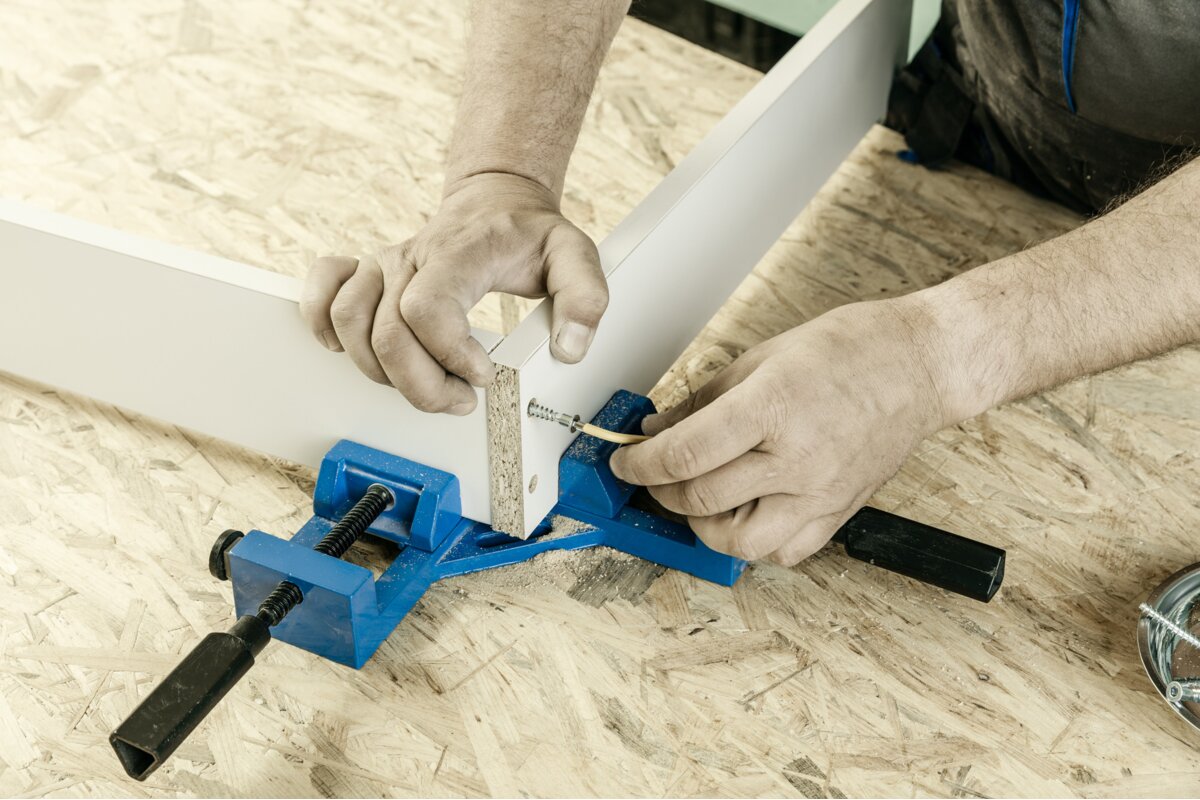 Ścisk umożliwia precyzyjny docisk klejonych elementów pod kątem 90°. Pomocny przy sklejaniu, skręcaniu, zbijaniu. Możliwość przymocowania do stołów warsztatowych.