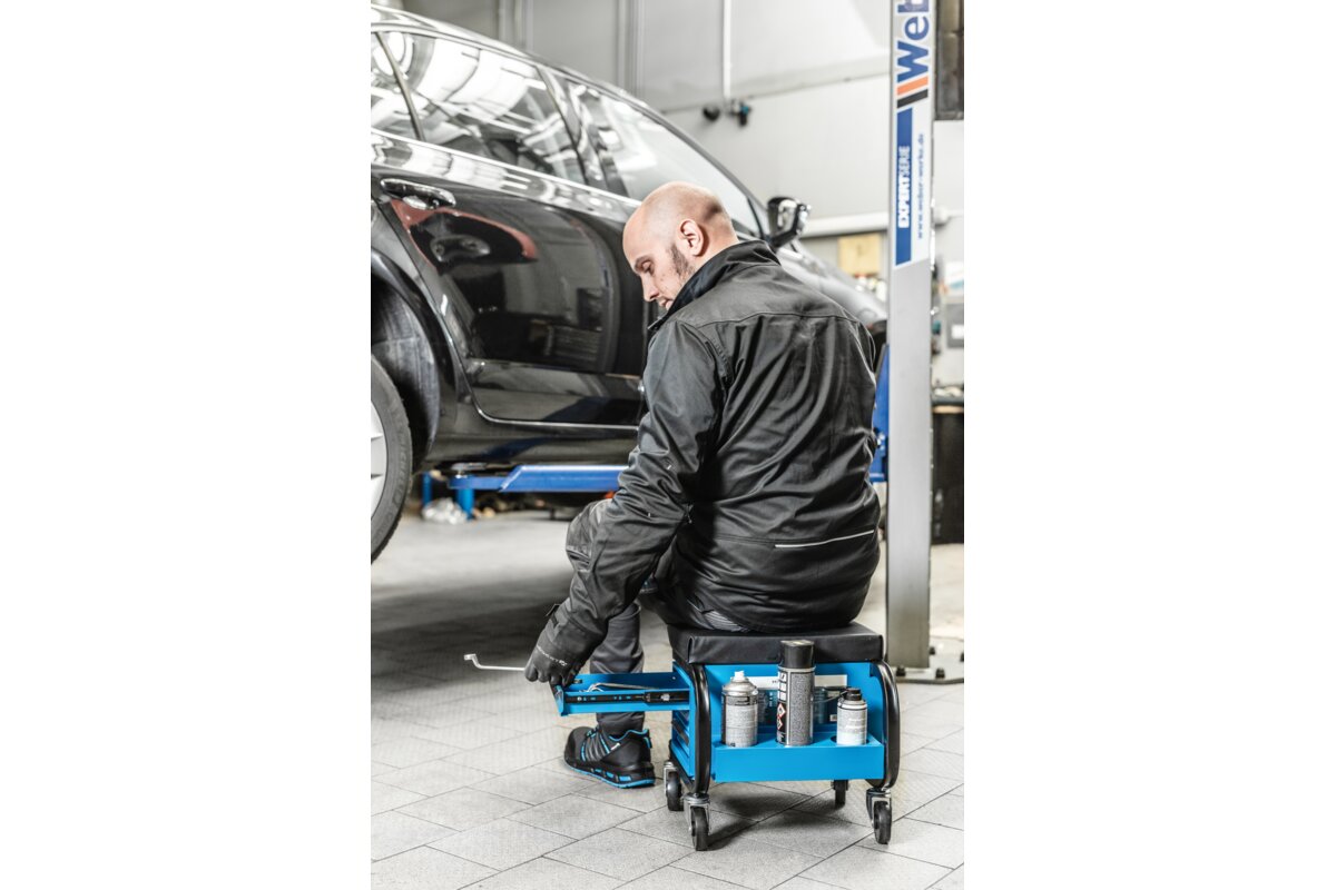 Siedzisko warsztatowe z trzema szufladami to praktyczne i funkcjonalne rozwiązanie dla osób pracujących w warsztatach, garażach lub innych miejscach, gdzie potrzebna jest wygoda i dobra organizacja miejsca pracy. To wygodne siedzisko wyposażone w trzy szuflady zapewnia łatwy dostęp do narzędzi i drobnych przedmiotów, co ułatwia prace i zwiększa komfort oraz efektywność.