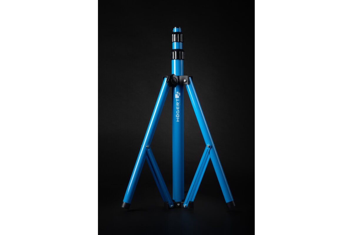 Solidny statyw typu tripod wykonany jest ze stali węglowej. Zapewnia stabilny dostęp do światła oraz oświetlenie z wybranej wysokości, zwiększając efektywność pracy. Dwa ramiona umożliwiają zamontowanie pojedynczego lub dwóch naświetlaczy jednocześnie. Statyw z powodzeniem można stosować na nierównych powierzchniach lub wszędzie tam, gdzie trzymanie naświetlacza byłoby trudne lub niebezpieczne.