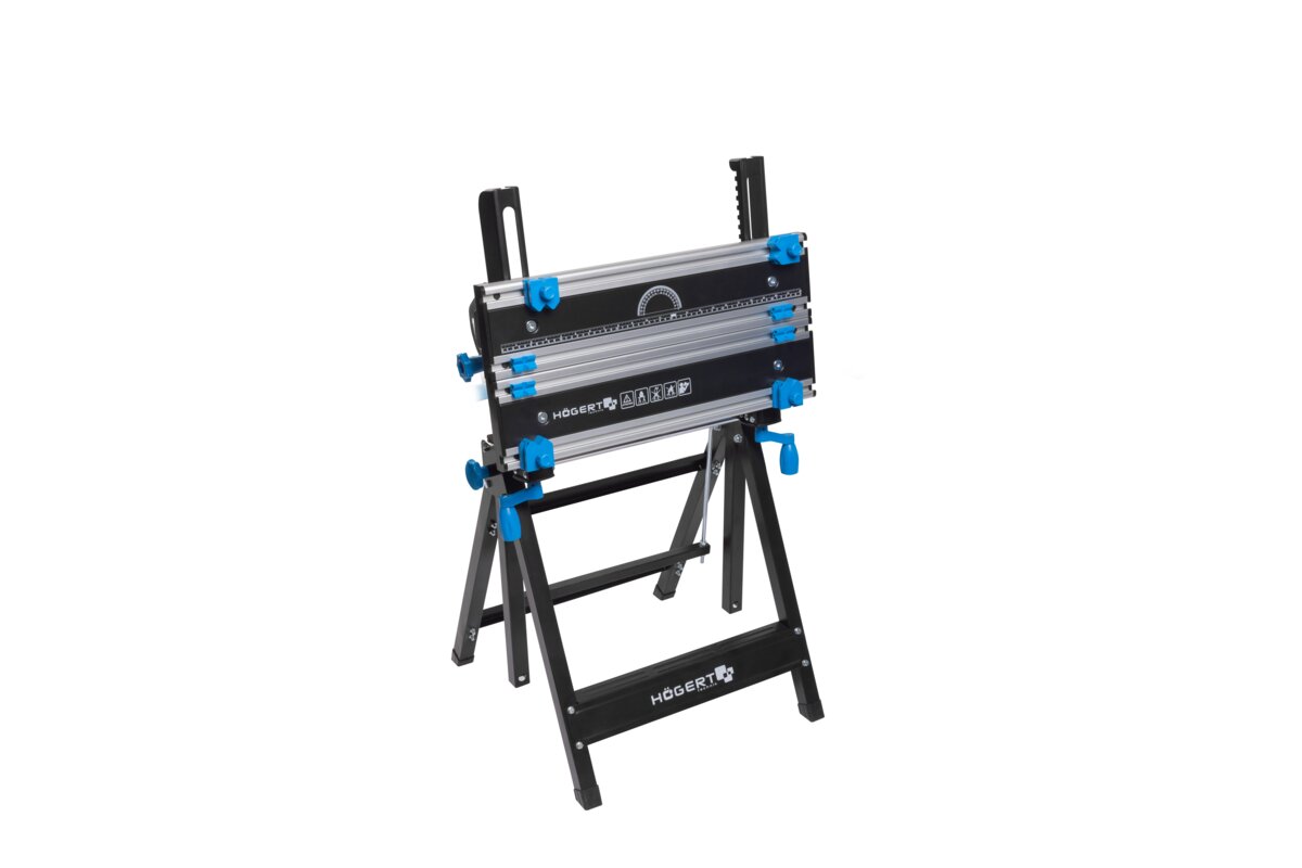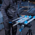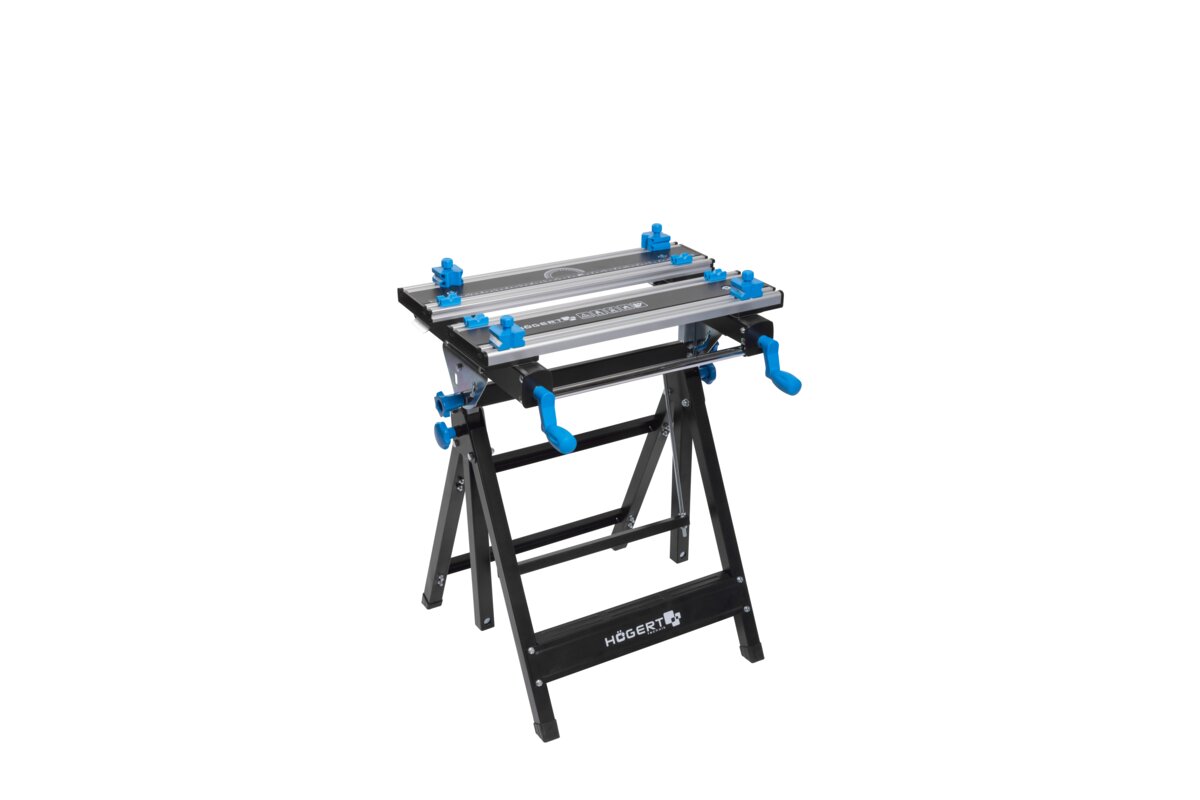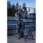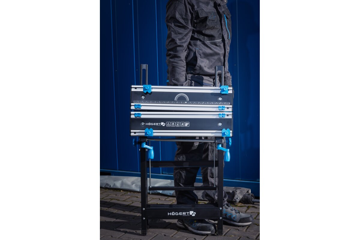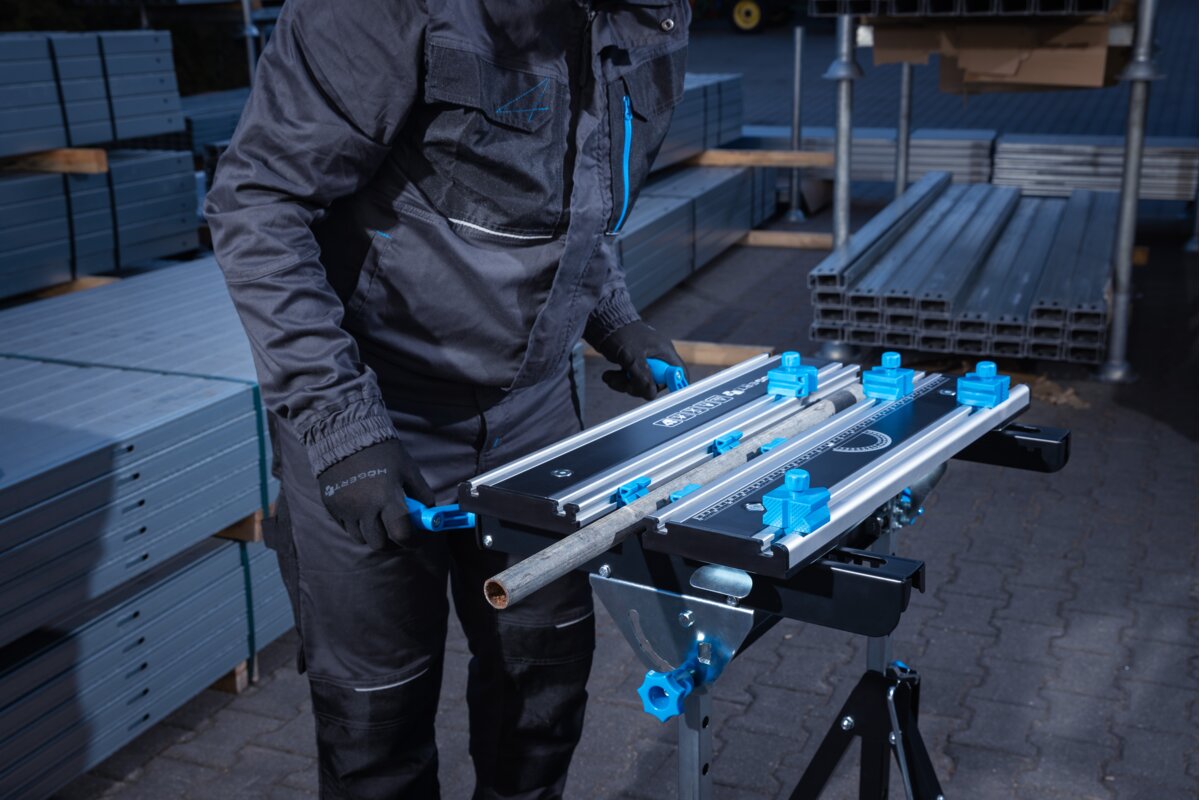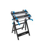 Wytrzymała stal oraz odporne i lekkie aluminium, użyte w blacie i konstrukcji stołu, gwarantują odporność i trwałość narzędzia.