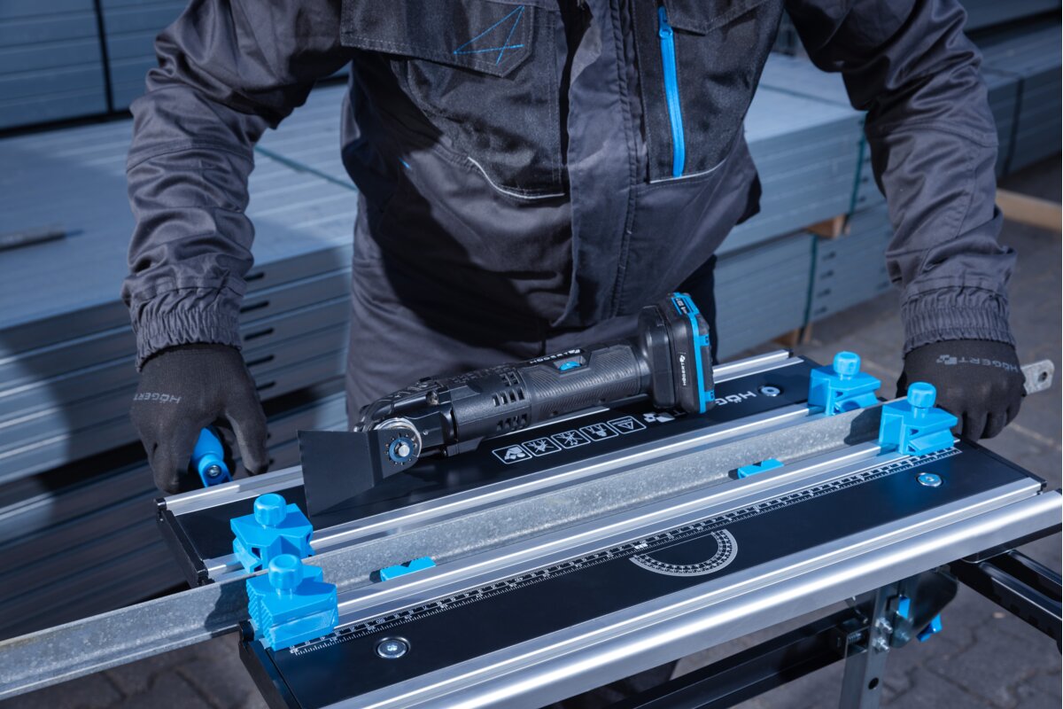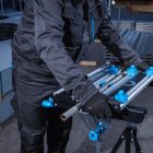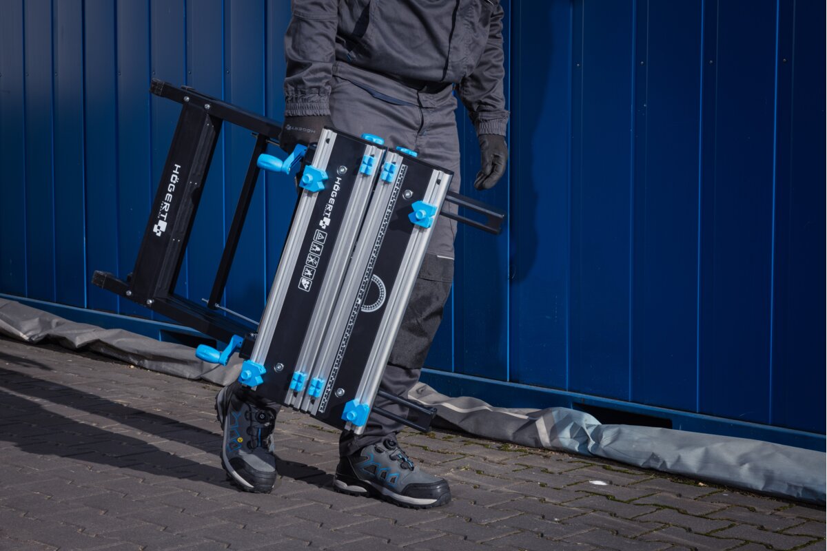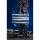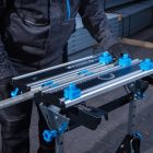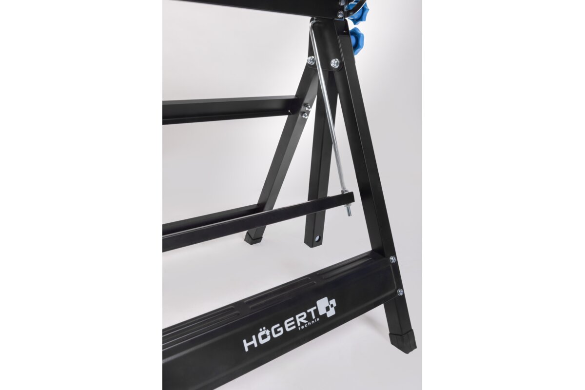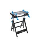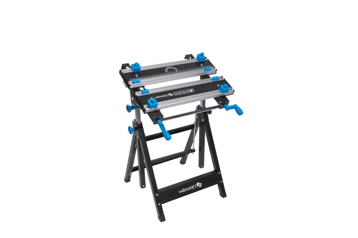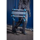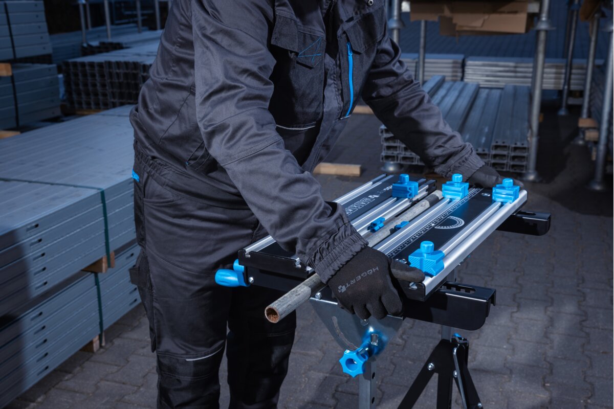 Wytrzymała stal oraz odporne i lekkie aluminium, użyte w blacie i konstrukcji stołu, gwarantują odporność i trwałość narzędzia.