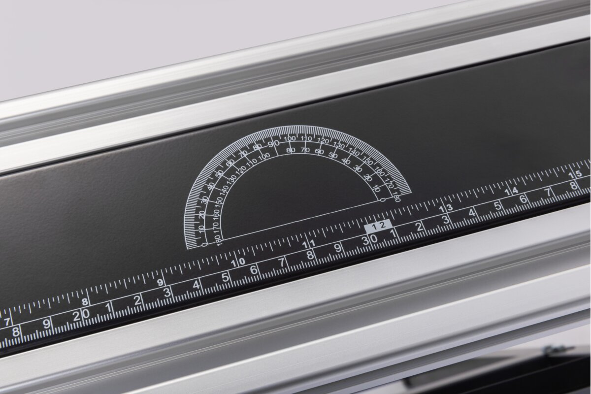 Nadrukowana na belce miara długości oraz kątowa ułatwiają prace przy docinaniu i montażu obrabianych elementów.