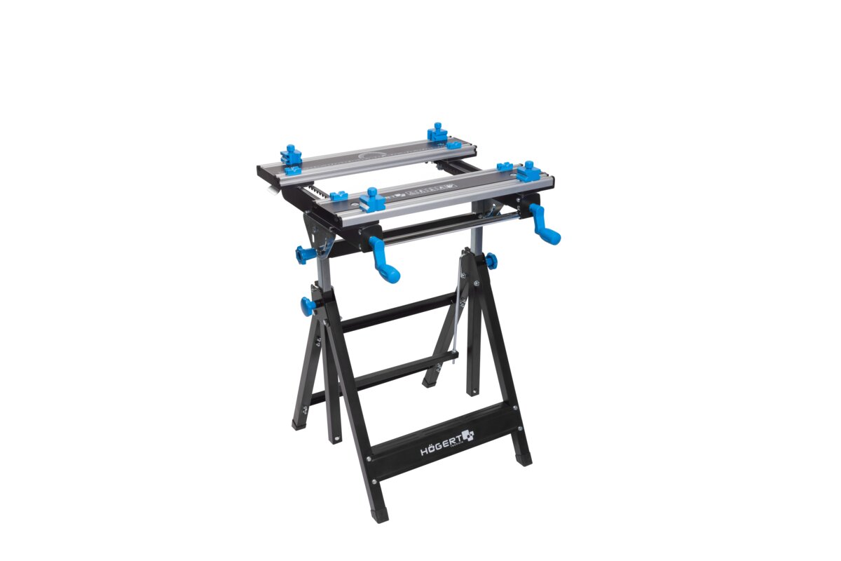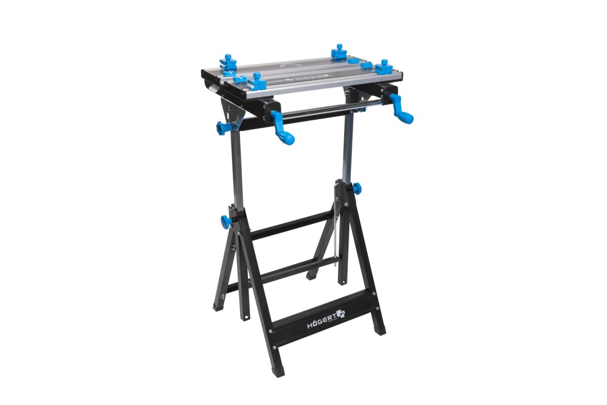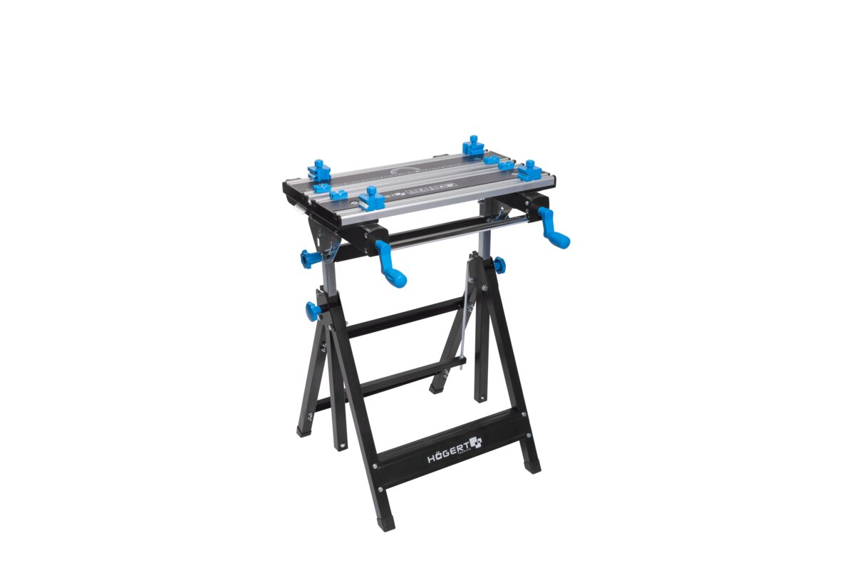 Regulowany, metalowy stół warsztatowy zapewnia wszechstronność związaną z wykonywaną pracą.