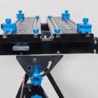 Płynna regulacja położenia belek podpierających, zwiększa powierzchnię mocowania. Ściskiem można dostosować uchwyt do nierównoległych brzegów przedmiotów.