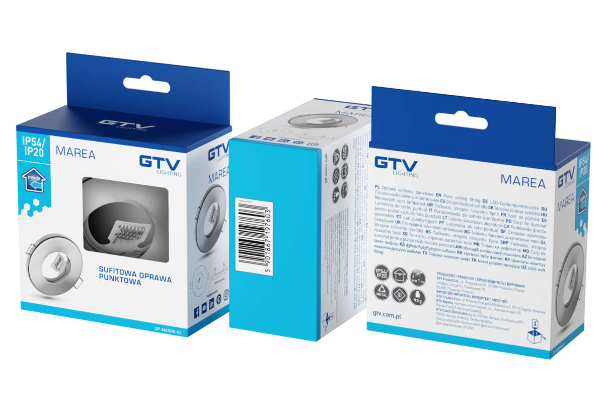 Punktowa oprawa sufitowa MAREA to propozycja, w której harmonijnie łączy się prosty, nieskomplikowany design i praktyczny aspekt funkcjonalności. Oprawa sufitowa pozwala doświetlić wybraną przestrzeń, a dzięki prostej formule wizualnej, spaja się z licznymi stylami aranżacyjnymi – klasyką, nowoczesnością, minimalizmem, stylem skandynawskim czy modnym eklektyzmem. Sprawdzi się w hotelach, biurach, restauracjach, placówkach użyteczności publicznej i oczywiście w domach oraz mieszkaniach. Aspekt praktyczny zwiększa uszczelnienie, dzięki któremu oprawa punktowa sufitowa MAREA jest odporna na wilgoć i zachlapania (stopień ochrony IP 20/54), świetnie spełni więc swoją rolę w łazience lub kuchni.