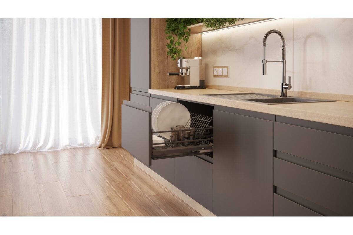 Niezależnie od stylu wnętrza Twojej kuchni, szuflada MOVIX to idealne rozwiązanie, które zadba o porządek i efektywność w przechowywaniu naczyń.