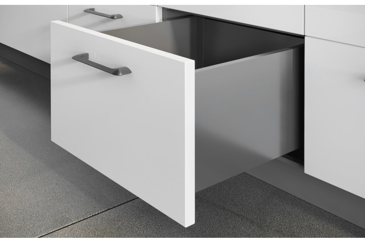 - prosta forma boku o szerokości zaledwie 14 mm pozwala na maksymalne wykorzystanie przestrzeni wewnętrznej szuflady;