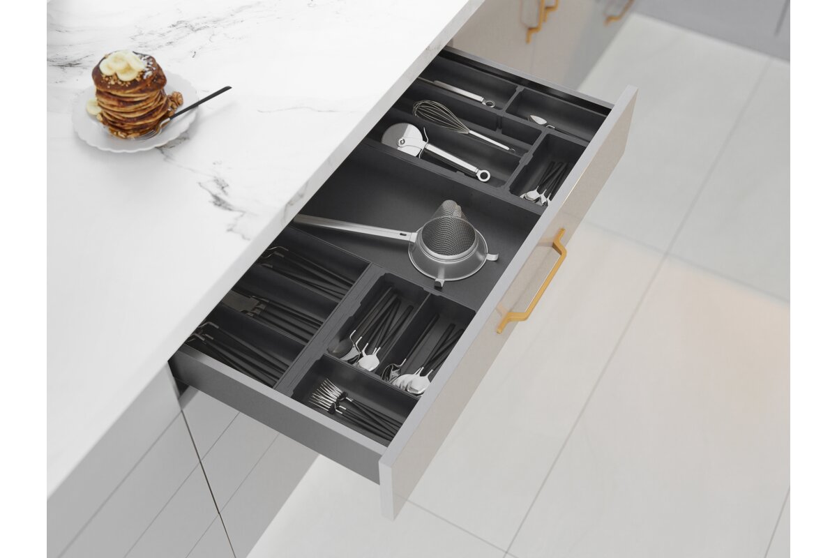 - prosta forma boku o szerokości zaledwie 14 mm pozwala na maksymalne wykorzystanie przestrzeni wewnętrznej szuflady;