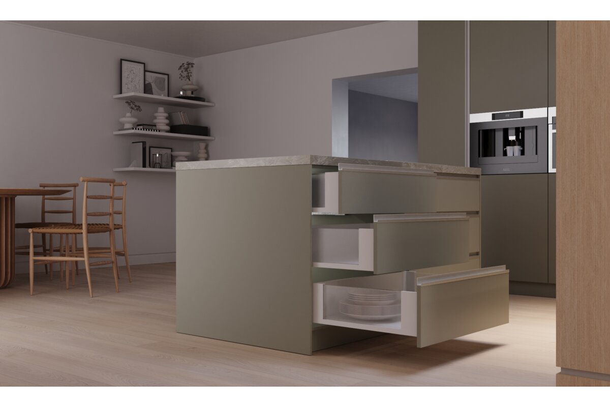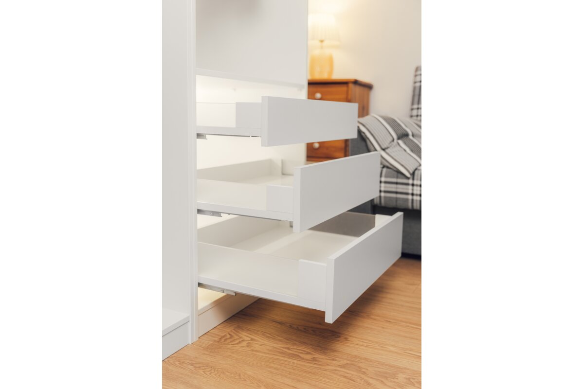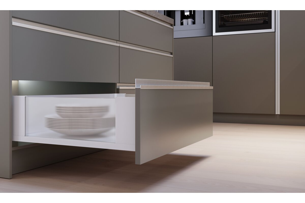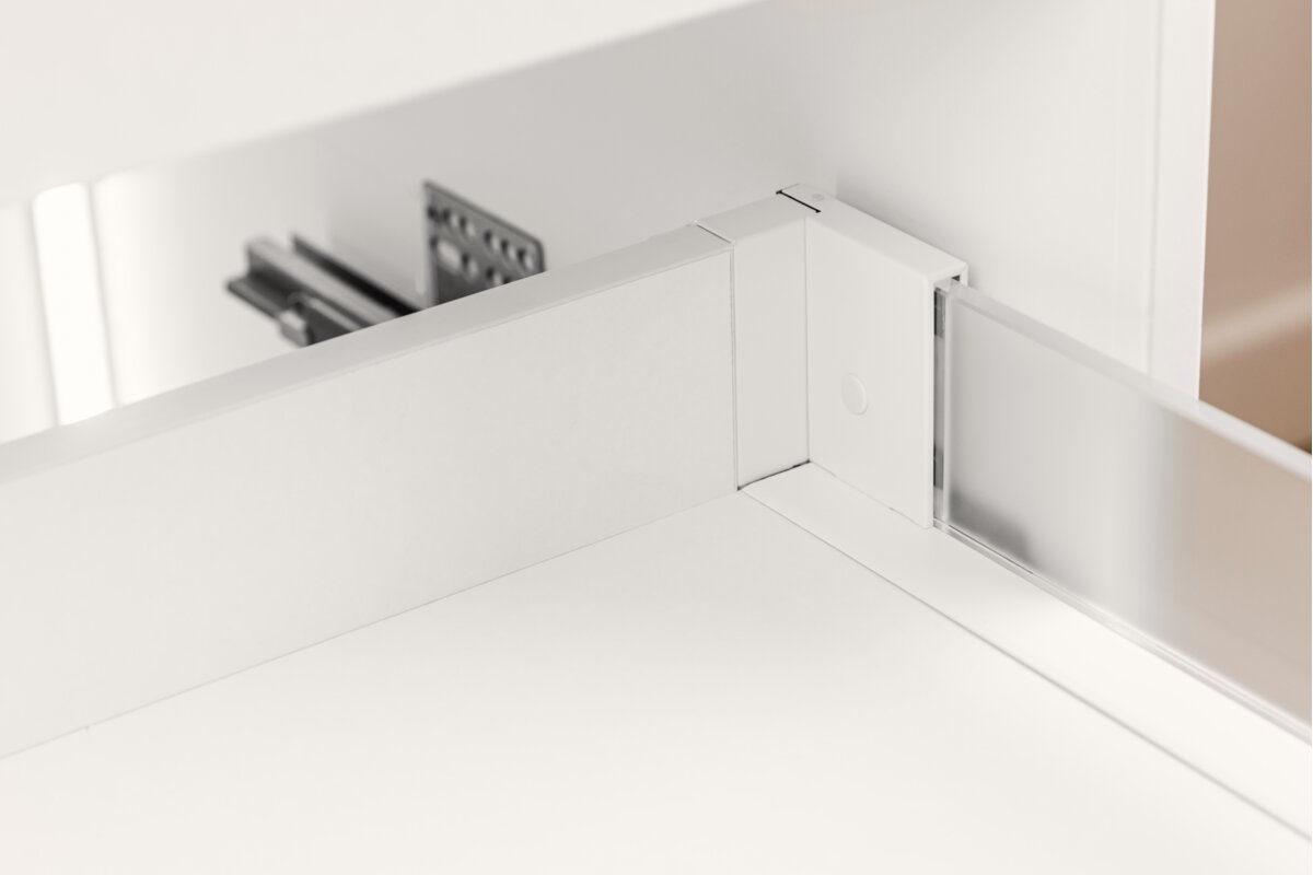 – Prosta forma boku o szerokości zaledwie 14 mm pozwala na maksymalne wykorzystanie przestrzeni wewnętrznej szuflady;