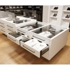 – W zakresie organizacji wewnętrznej przestrzeni szuflady w ofercie dostępne są: wkłady na sztućce CUSTOMI, segregatory na odpady oraz maty antypoślizgowe AXISPACE.