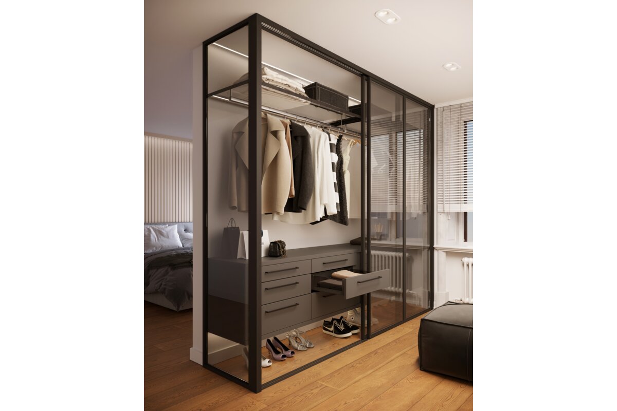 Szuflada GTV AXIS PRO H=86, L=550, cichy domyk, bok ze szkłem, antracyt