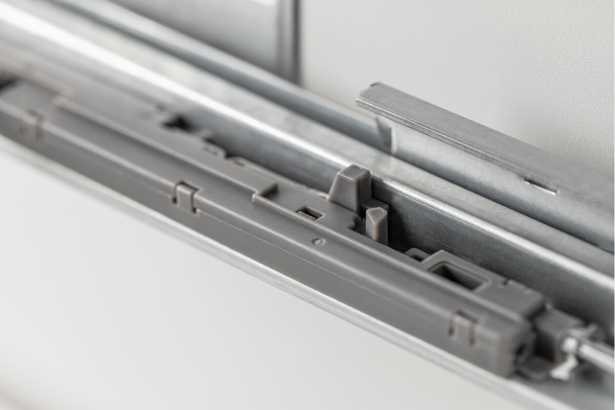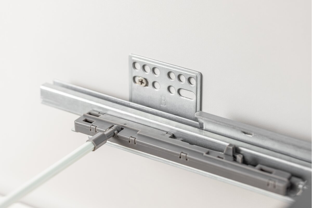 Pełen wysuw zawarty w prowadnicach w połączeniu z mechanizmem push to open gwarantuje łatwe otwieranie i delikatne zamykanie szuflady. Maksymalna nośność tego produktu pozwala na obciążenie nie przekraczające 40 kg, zachowując przy tym płynne działanie systemu.