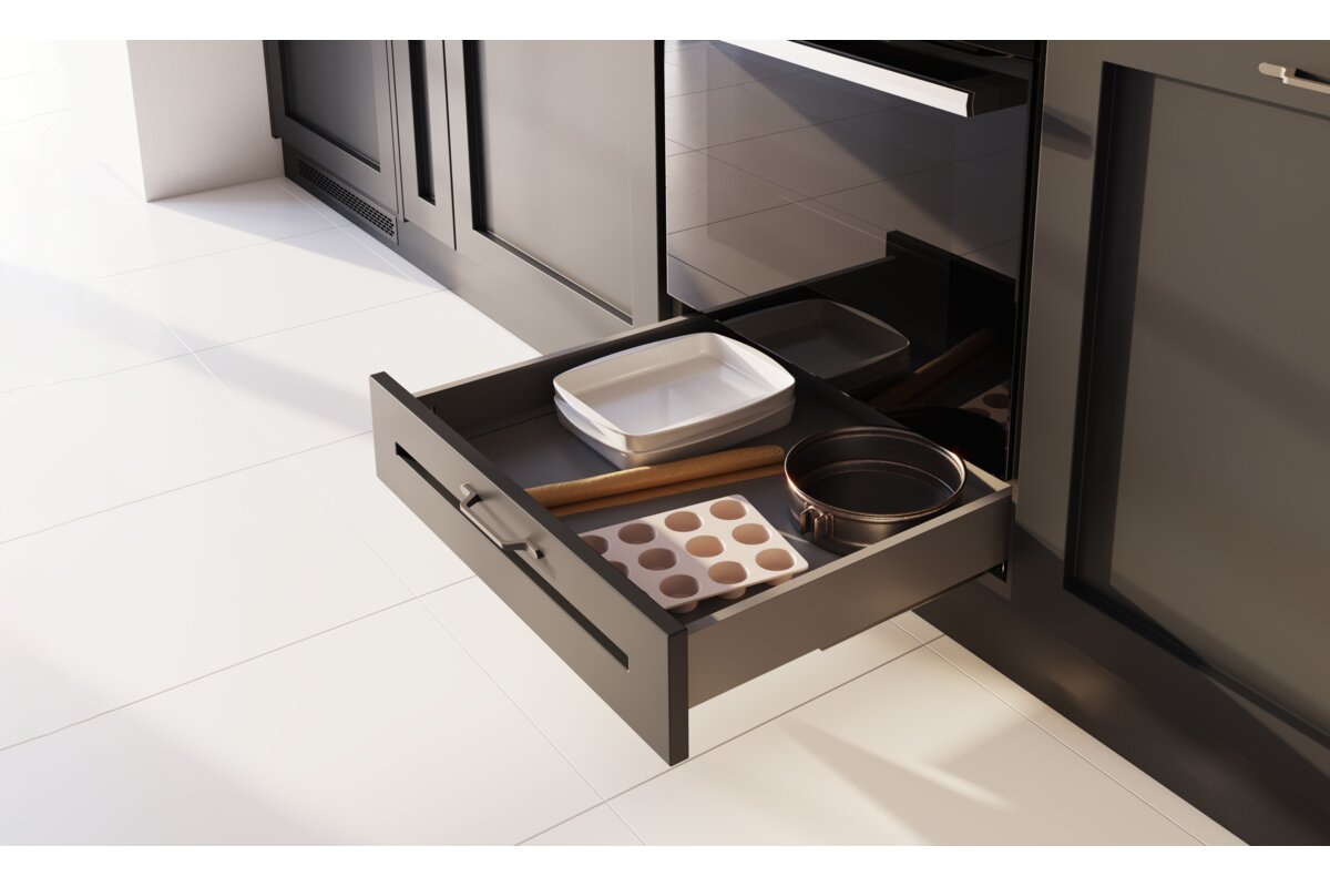 Systemy AXIS PRO Push to open to nowoczesne rozwiązania, które sprawdzą się w każdego rodzaju pomieszczeniach. Jest to ekstra niski system szuflady przeznaczony do montażu mi.in. w kuchni (minimalna wysokość w korpusie do montażu szuflady wynosi 100 mm).