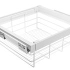 Zawartość zestawu: 2 szt. prowadnica dolnego montażu, 2 szt. osłona prowadnicy, 2 szt. mocowanie kosza, rama z regulacją szerokości +/- 58mm, kosz druciany, ażurowy, wkręty