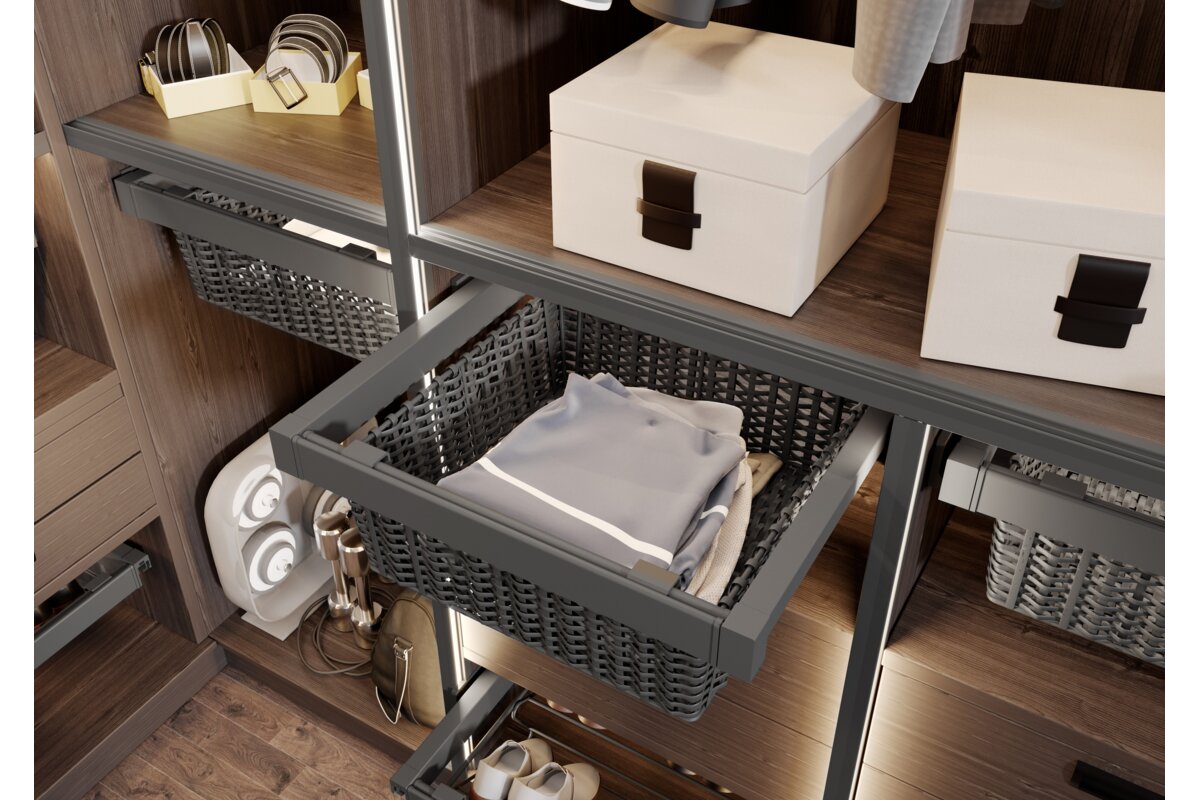 Szuflada rattanowa z linii ELITE to funkcjonalne rozwiązanie do każdej garderoby. W łatwy i szybki sposób pozwoli na uporządkowanie miejsca w szafie. Dzięki niej przechowywane przedmioty są bezpieczne i łatwo dostępne. Kosz rattanowy ELITE dostępny jest w dwóch wariantach kolorystycznych oraz czterech wariantach rozmiarowych z możliwością dostosowania szerokości do korpusu. Technologia cichego domyku oraz pełny wysuw ułatwia codzienne użytkowanie kosza. Zestaw jest wyposażony w dwie sztuki prowadnic dolnego montażu, dwie sztuki osłon prowadnicy, dwie sztuki mocowania kosza, ramę z regulacją szerokości +/- 58 mm, kosz rattanowy oraz wkręty.