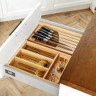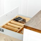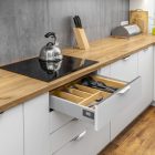 - zróżnicowany wachlarz rozwiązań w zakresie organizacji wewnętrznej przestrzeni szuflady: relingi poprzeczne, listwy poprzeczne, przegródki, wkłady na sztućce CUSTOMI, segregatory na odpady, maty antypoślizgowe AXISPACE.
