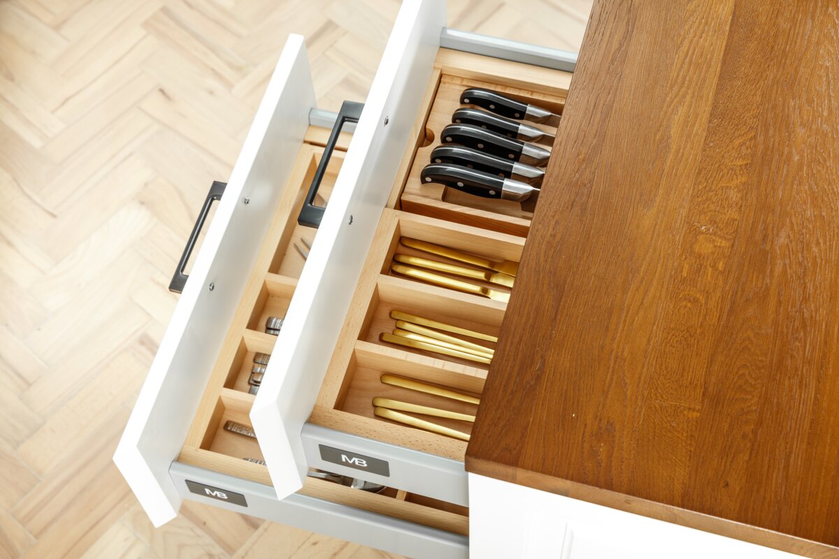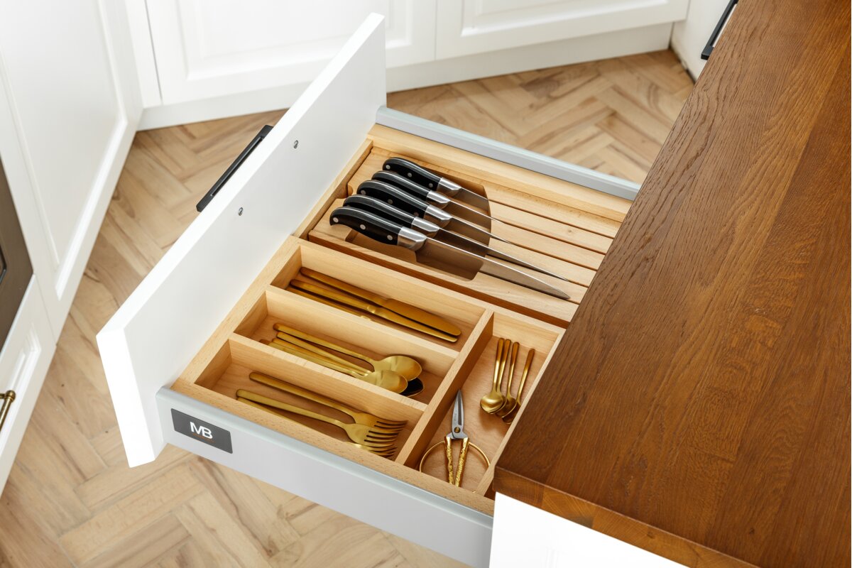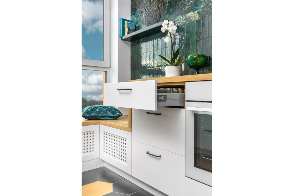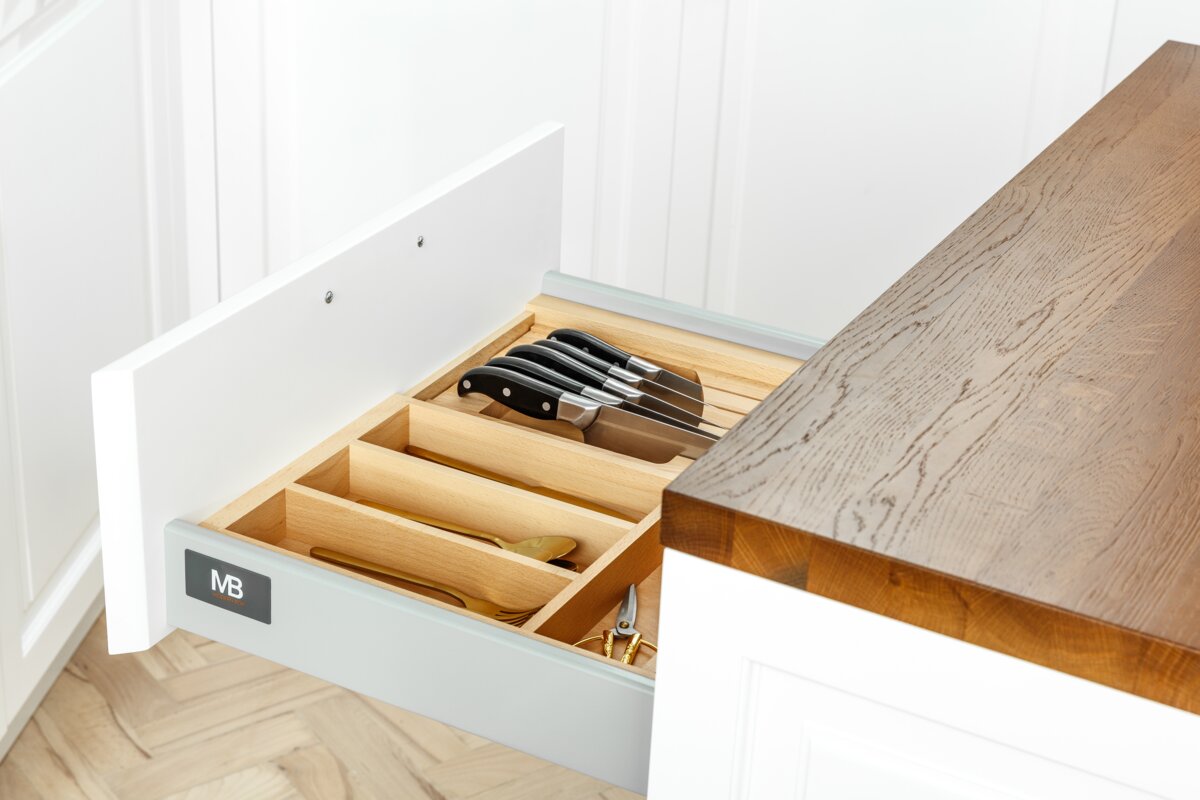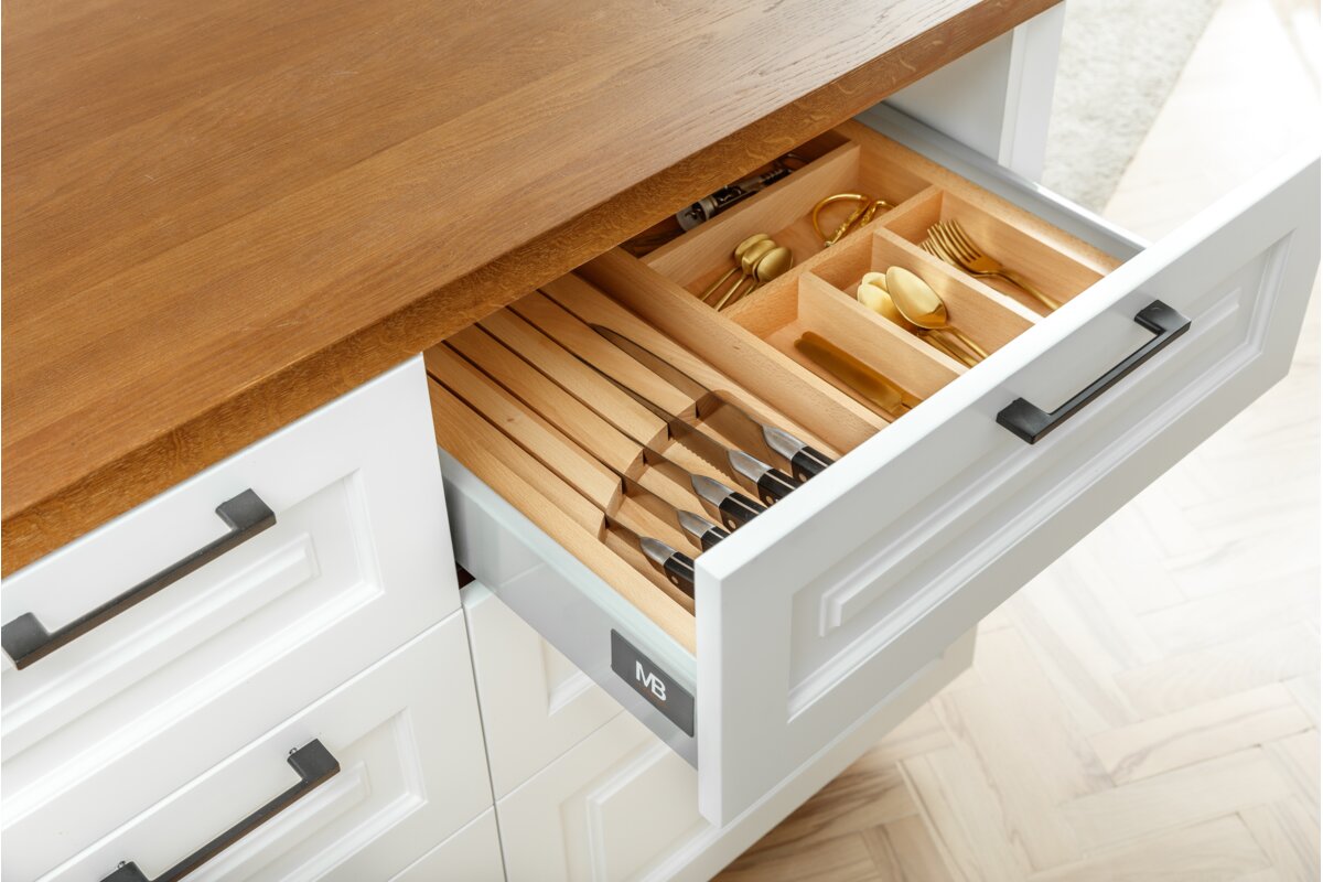 - cichy domyk – mechanizm nie pozwala na głośne zamknięcie szuflady, zostaje ona cicho domknięta;