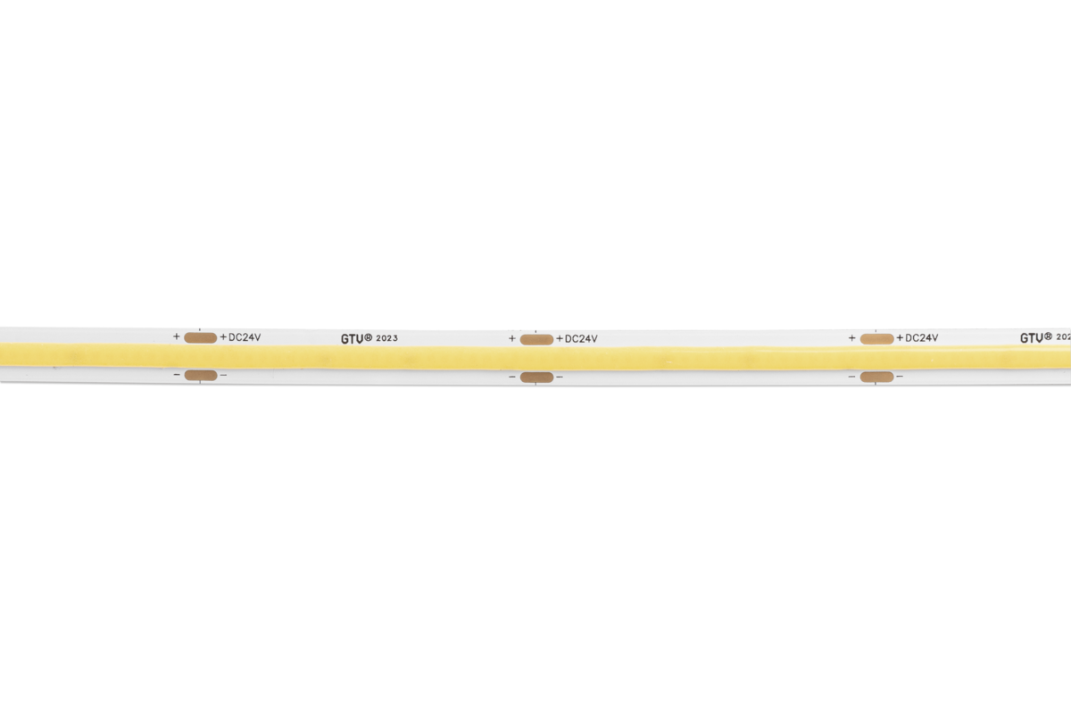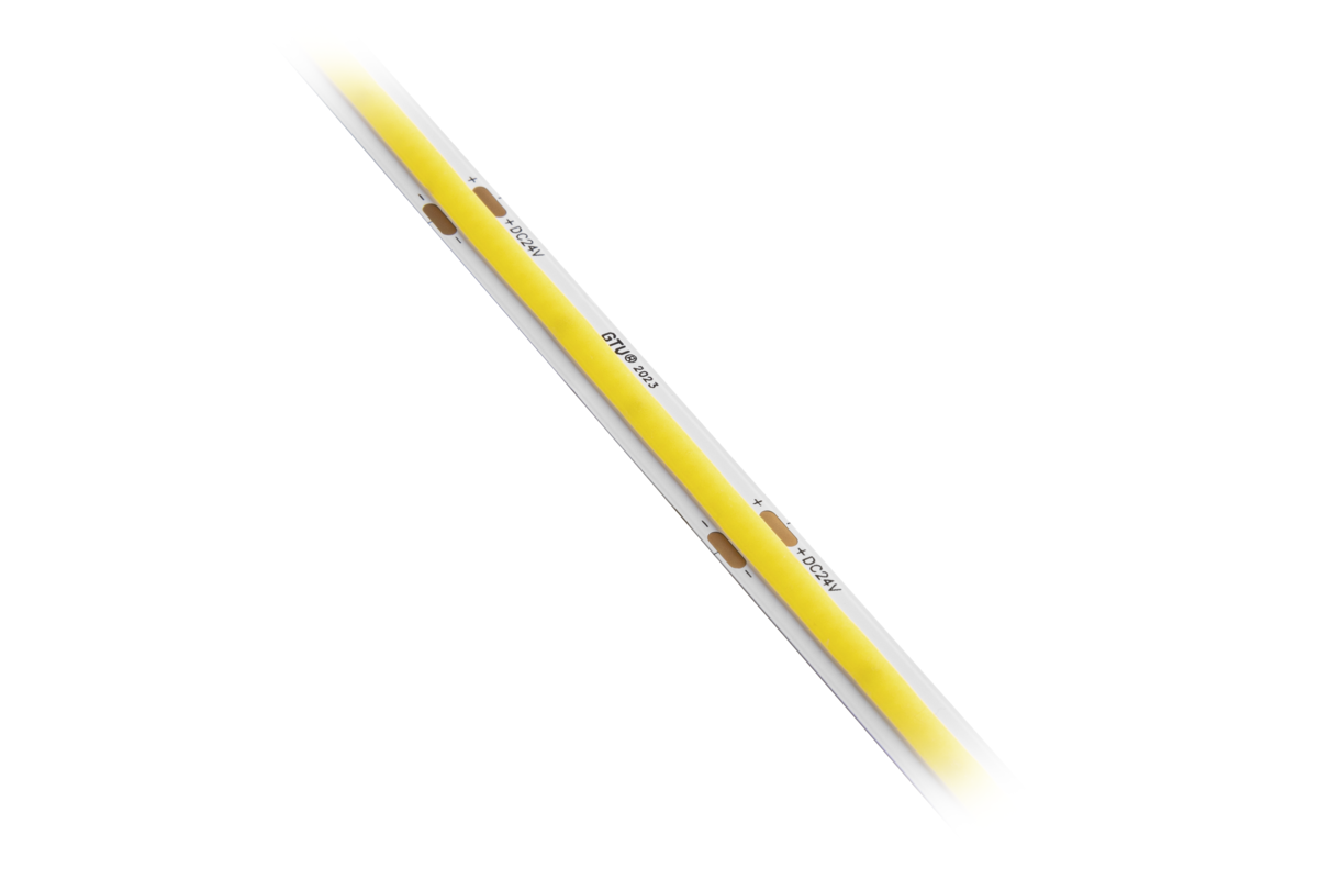 Taśmy LED towarzyszą nam od wielu lat, znajdując bardzo szeroki wachlarz zastosowań w domach, biurach i sklepach. W odróżnieniu od tradycyjnych taśm opartych na diodach SMD gdzie widoczne są punkty świetlne, taśmy w technologii COB tworzą równą linię światła bez widocznych punktów. Taki efekt zawdzięczamy bardzo gęsto ułożonym diodom, których jest aż 480 na 1 metrze długości taśmy. Większy jest także kąt świecenia – 180°. Nasza taśma COB posiada bardzo wysoki współczynnik oddawania barw CRI, RA>90.