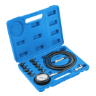 Miernik ciśnienia oleju w cylindrach silników benzynowych oraz wysokoprężnych pozwala dokonać precyzyjnych pomiarów ciśnienia oleju. Czytelna, podwójna skala manometru ułatwia odczytywanie wyniku pomiaru. Wskaźnik wykonany jest z odpornych na uszkodzenia, a przy tym lekkich materiałów. Dodatkowo szybka wskaźnika obudowana jest gumową osłoną absorbującą wstrząsy. Części są wyposażone w szybkozłącza do łatwego i szybkiego zamontowania. Stosowany głównie w serwisach motoryzacyjnych.