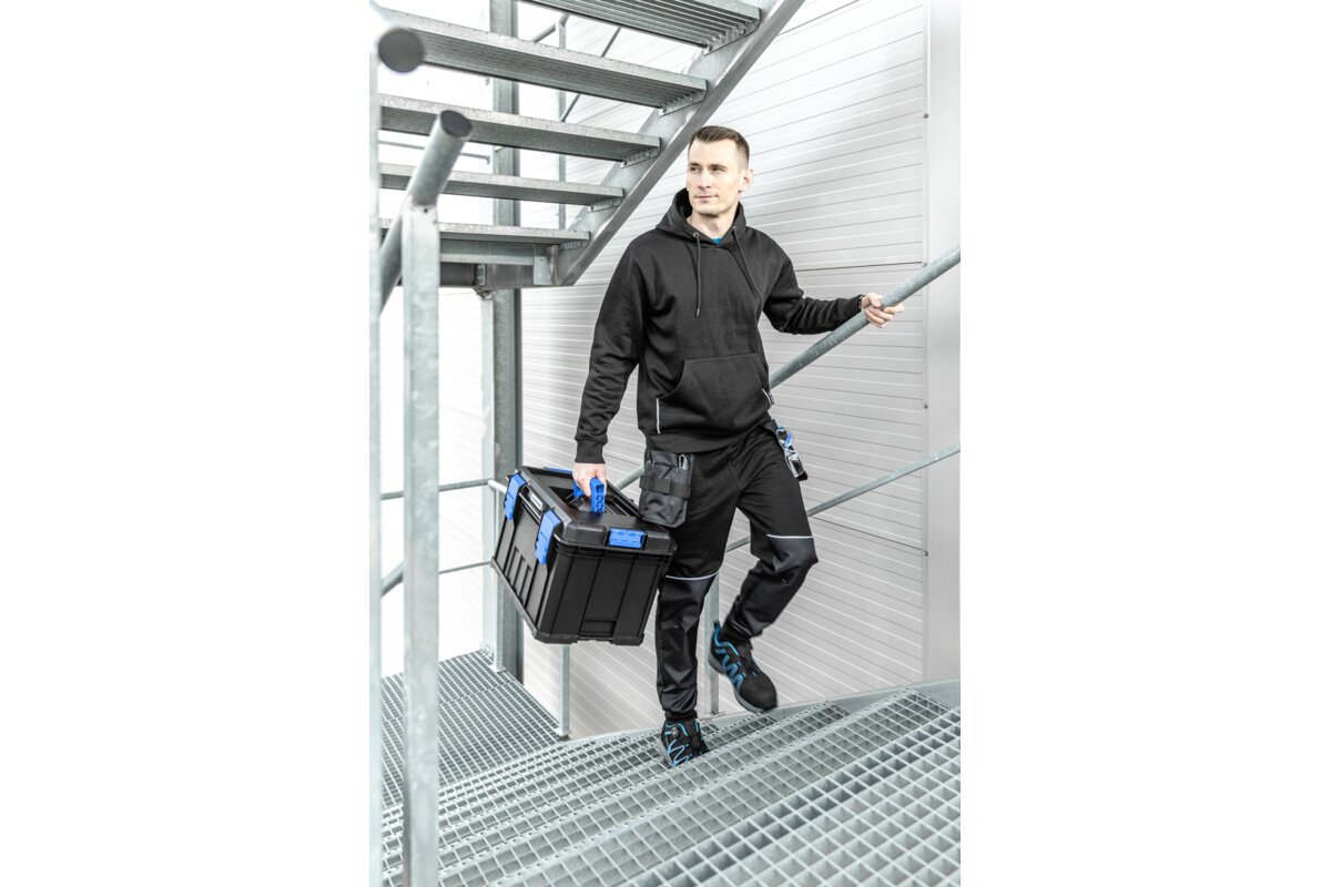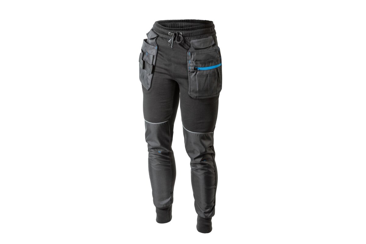 Męskie spodnie dresowe stworzone z myślą o profesjonalistach pracujących w wymagających warunkach – idealne dla pracowników budowlanych, produkcyjnych, mechaników oraz techników serwisowych. Techniczny krój zapewnia wygodę i nie ogranicza ruchów podczas pracy, a czarna kolorystyka z niebieskimi akcentami nadaje spodniom nowoczesny wygląd. Wzmocnienia z materiału OXFORD 600D oraz odblaskowe detale zwiększają odporność na przetarcia i poprawiają widoczność po zmroku.