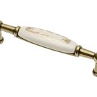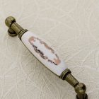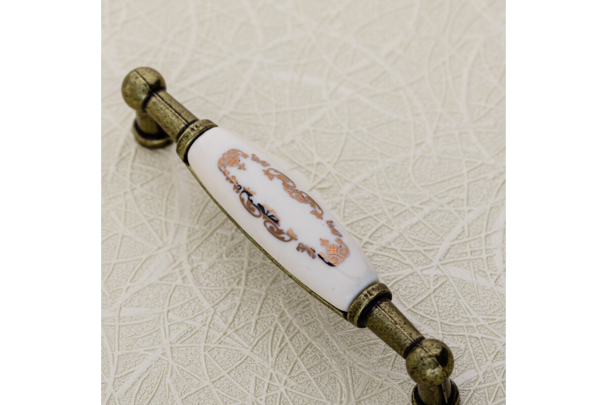 Uchwyt meblowy GTV 0728B, C=96 mm, L=106 mm, ornament, porcelana, antyczny mosiądz