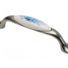 Uchwyt meblowy GTV 728P, C=96 mm, L=125 mm, blue rose, porcelana, antyczne srebro
