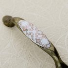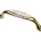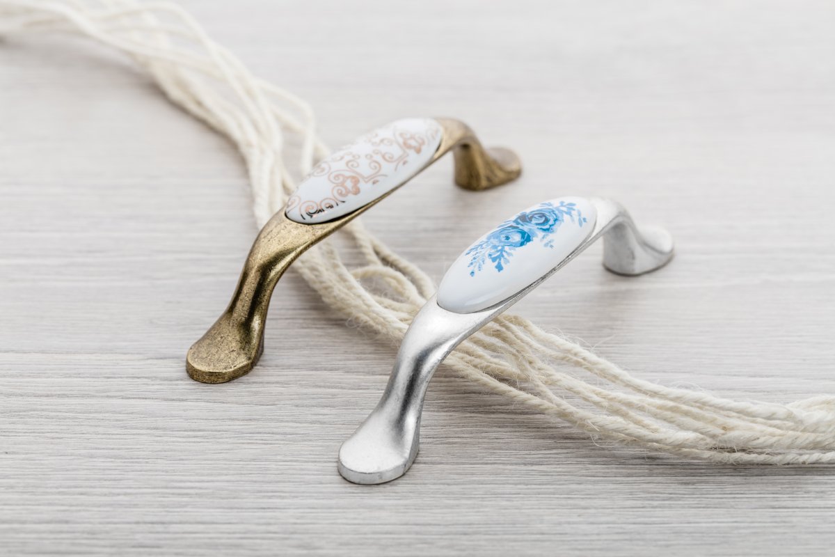 Uchwyt meblowy 728P w stylu retro nada nietuzinkowego klimatu wnętrzu. Będzie idealnie komponował się z drewnianymi frontami. Stylowe i eleganckie uchwyty z kolekcji 728P posiadają porcelanowe elementy z oryginalnymi zdobieniami w siedmiu motywach: blue rose (niebieska róża), orient gold (bogate zdobienie w kolorze złota), ornament (finezyjne zdobienie w kolorze złota), autumn rose (jesienny kwiat), spring flower (wiosenne kwiaty), country (źdźbło zboża) oraz milky (mleczna porcelana). Zróżnicowanie dostępnych wzorów pozwoli na dopasowanie odpowiedniego motywu do dekoracji w mieszkaniu. Podstawa uchwytu wykonana jest ze ZnAlu w kolorze antycznego mosiądzu. Uchwyty dostępne są w rozstawie 96 mm i długości 125 mm.