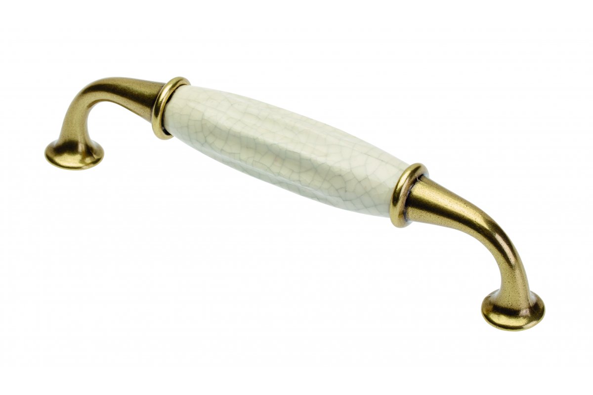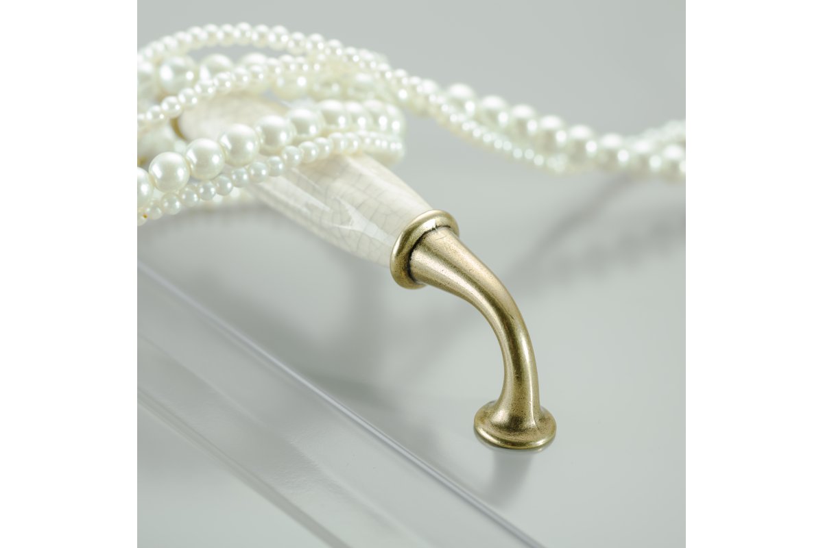 - wykonany ze znalu w kolorze antycznego mosiądzu oraz porcelany – wizualnie jest niezwykle delikatny, ale w rzeczywistości bardzo wytrzymały;