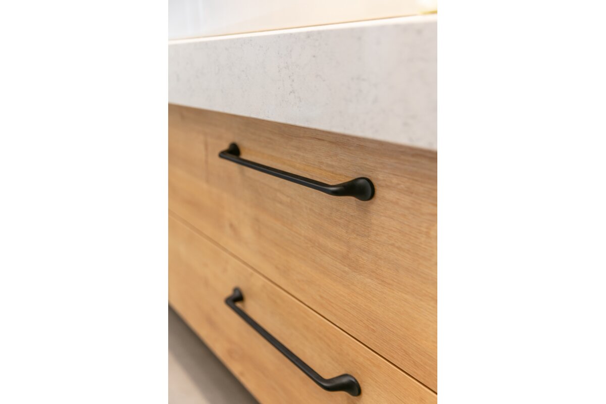 Jeśli jesteś miłośnikiem klasycznych kształtów to na pewno zakochasz się w uchwytach z kolekcji FABRICIO. Sprawdzi się ona idealnie jako dodatek do stylu klasycznego i nowoczesnego. Uchwyt ten występuje w trzech rozstawach oraz w trzech kolorach: czarnym macie, złocie szczotkowanym i mosiądzu, które z łatwością połączysz z każdym kolorem frontu meblowego. Część pochwytowa w formie minimalistycznego pręta nadaje lekkości w stylu skandynawskim. Delikatnie zaokrąglone stopki stanowią dekoracyjny detal.