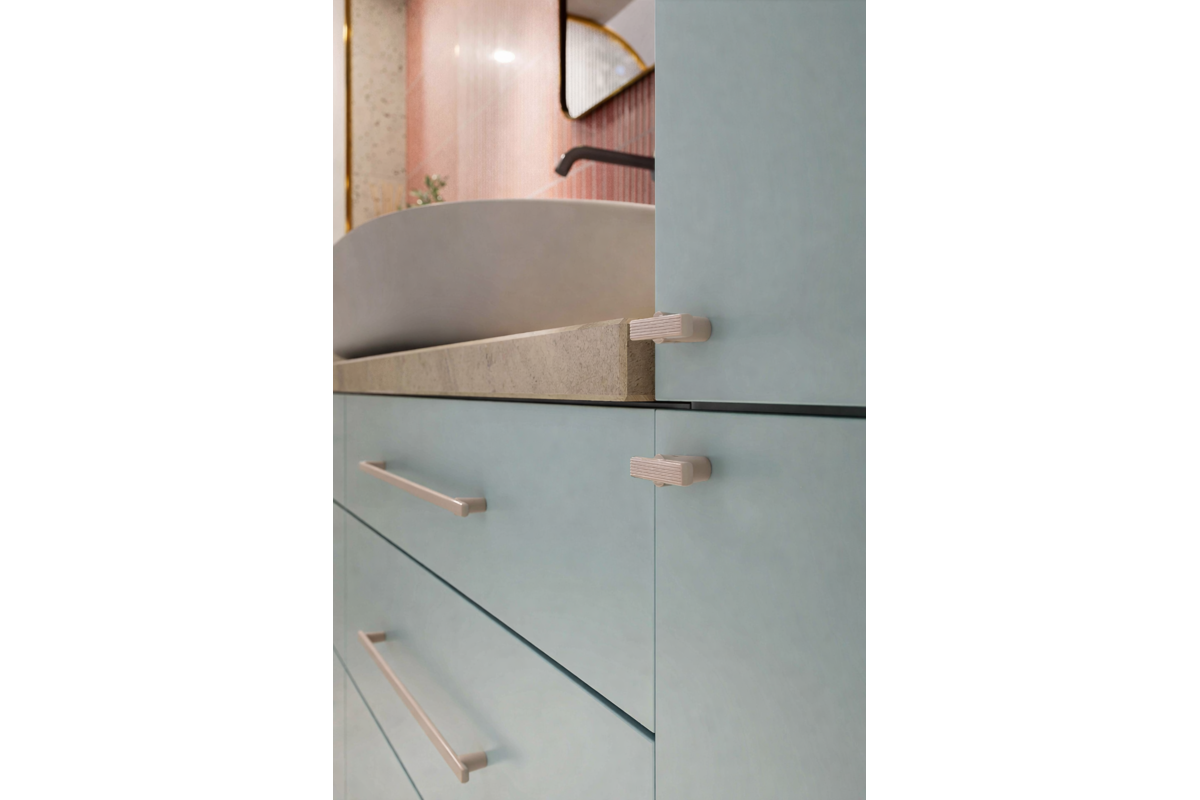 - Proste i delikatne linie uchwytu dodają meblom lekkości, a ich subtelne wykończenie doskonale komponuje się z frontami