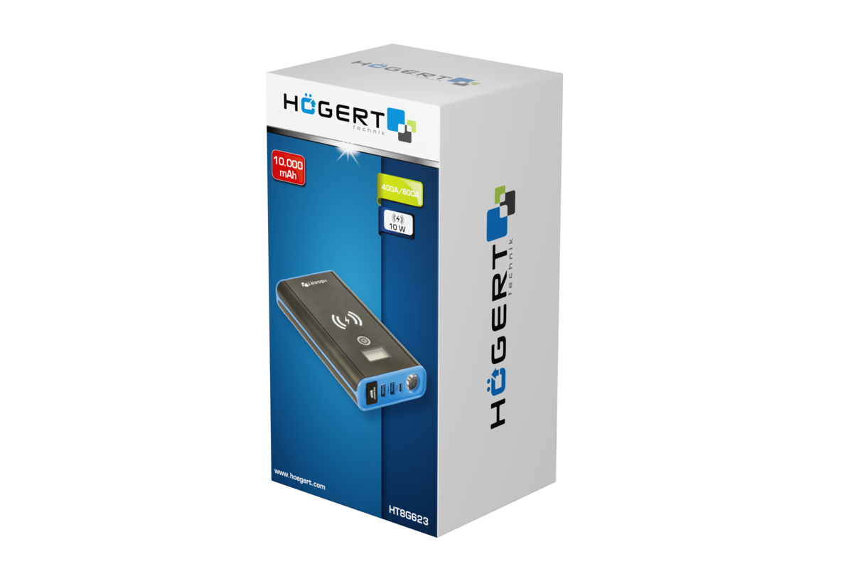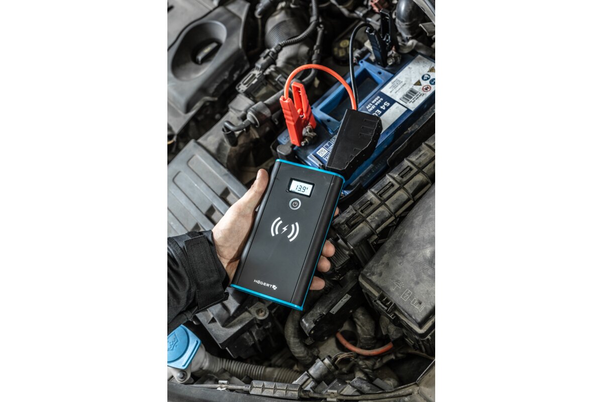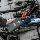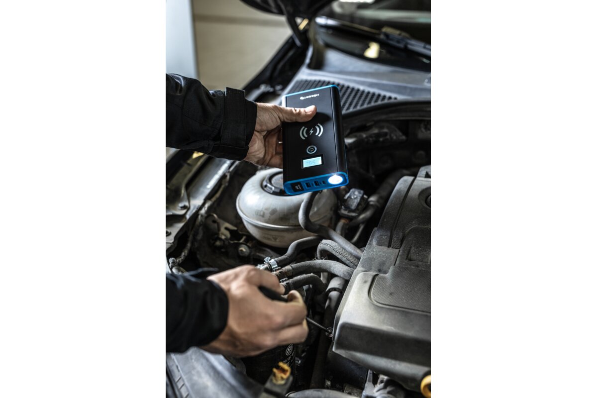 Narzędzie 4w1. Jego podstawową funkcją jest awaryjny rozruch samochodu osobowego z rozładowanym akumulatorem. Dodatkową cechą tego urządzenia jest wbudowana bezprzewodowa ładowarka indukcyjna o mocy 10W, która umożliwia zaopatrzenie w prąd kompatybilnych urządzeń z technologią Qi, jak np. telefon. Dwa wejścia USB, pozwalają ładować przewodowo inne urządzenia. Wbudowana latarka pracuje w trzech trybach: stałym, błyskająco-ostrzegawczym oraz wzywającym pomoc SOS. Wyświetlacz pozwala na kontrolowanie stanu naładowania. Narządzie ładuje się je za pomocą kabla USB-C, np. z ładowarki telefonu.